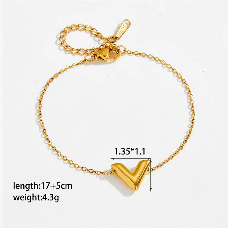✨ 18k Gold V Charm Bracelet – Adjustable, Tarnish-Free & Water-Resistant. Perfect minimalist jewelry for everyday luxury. Shop premium titanium steel!