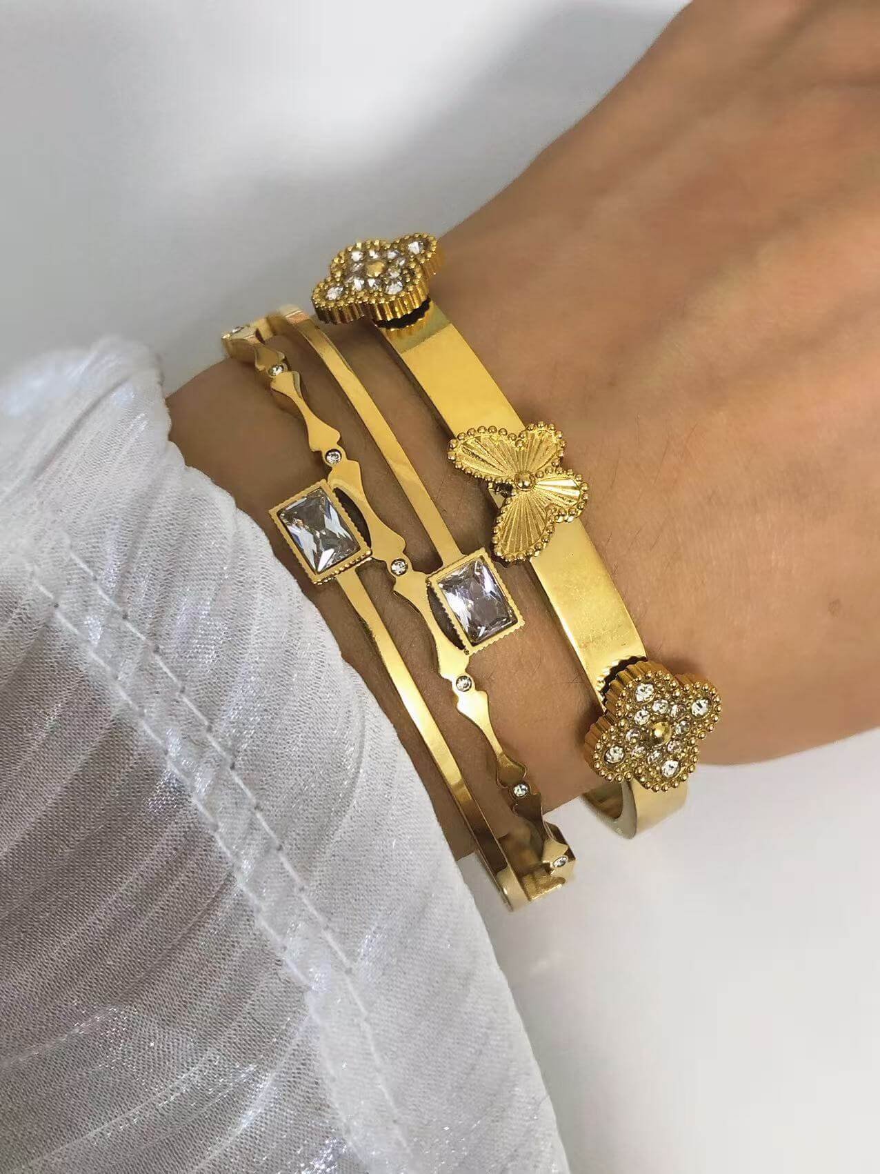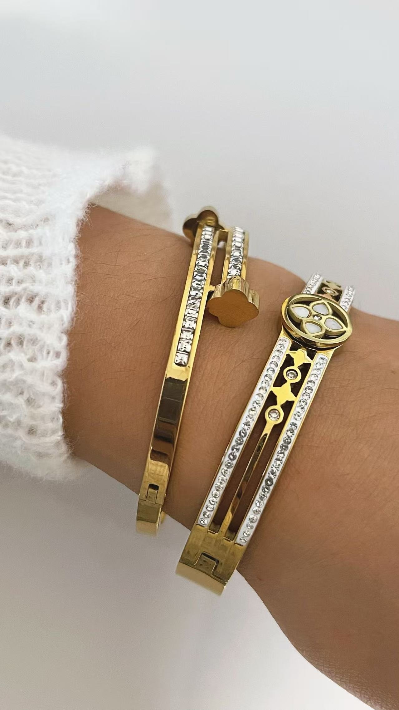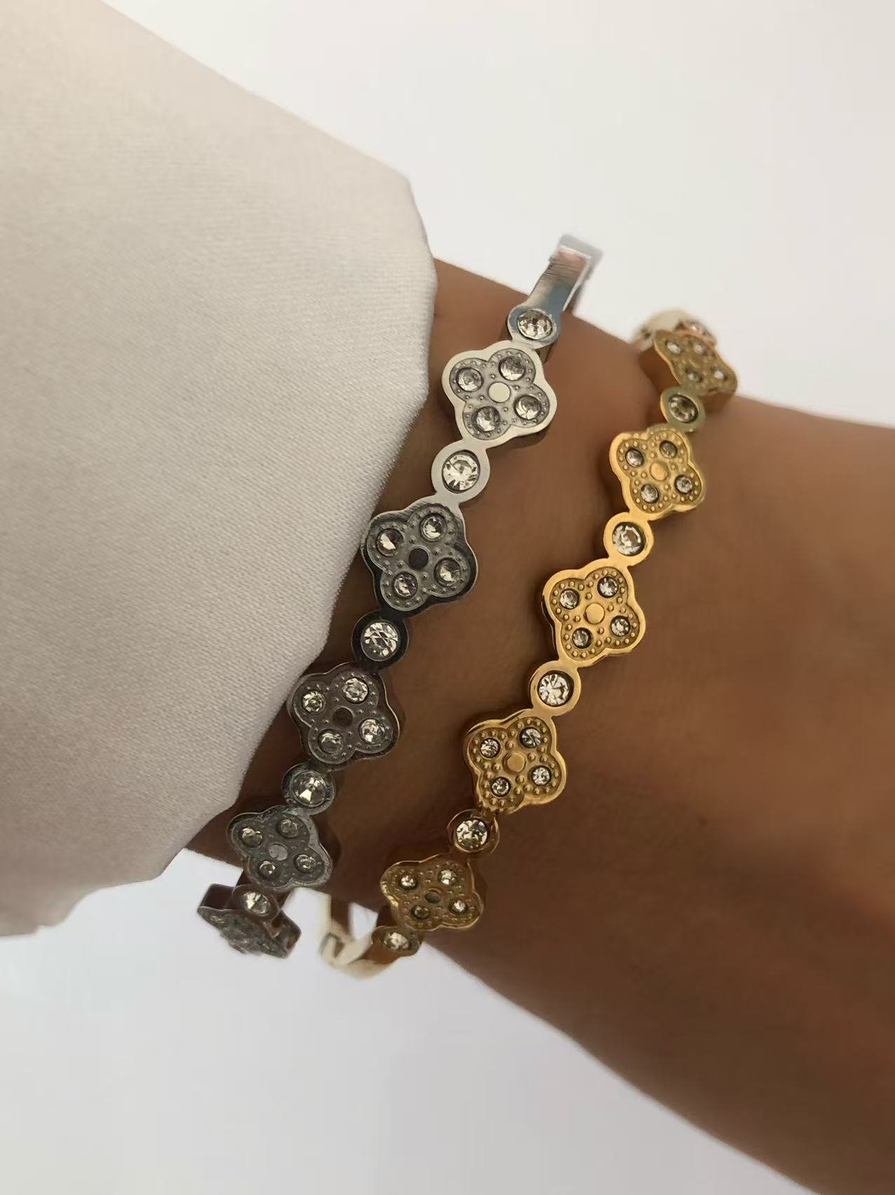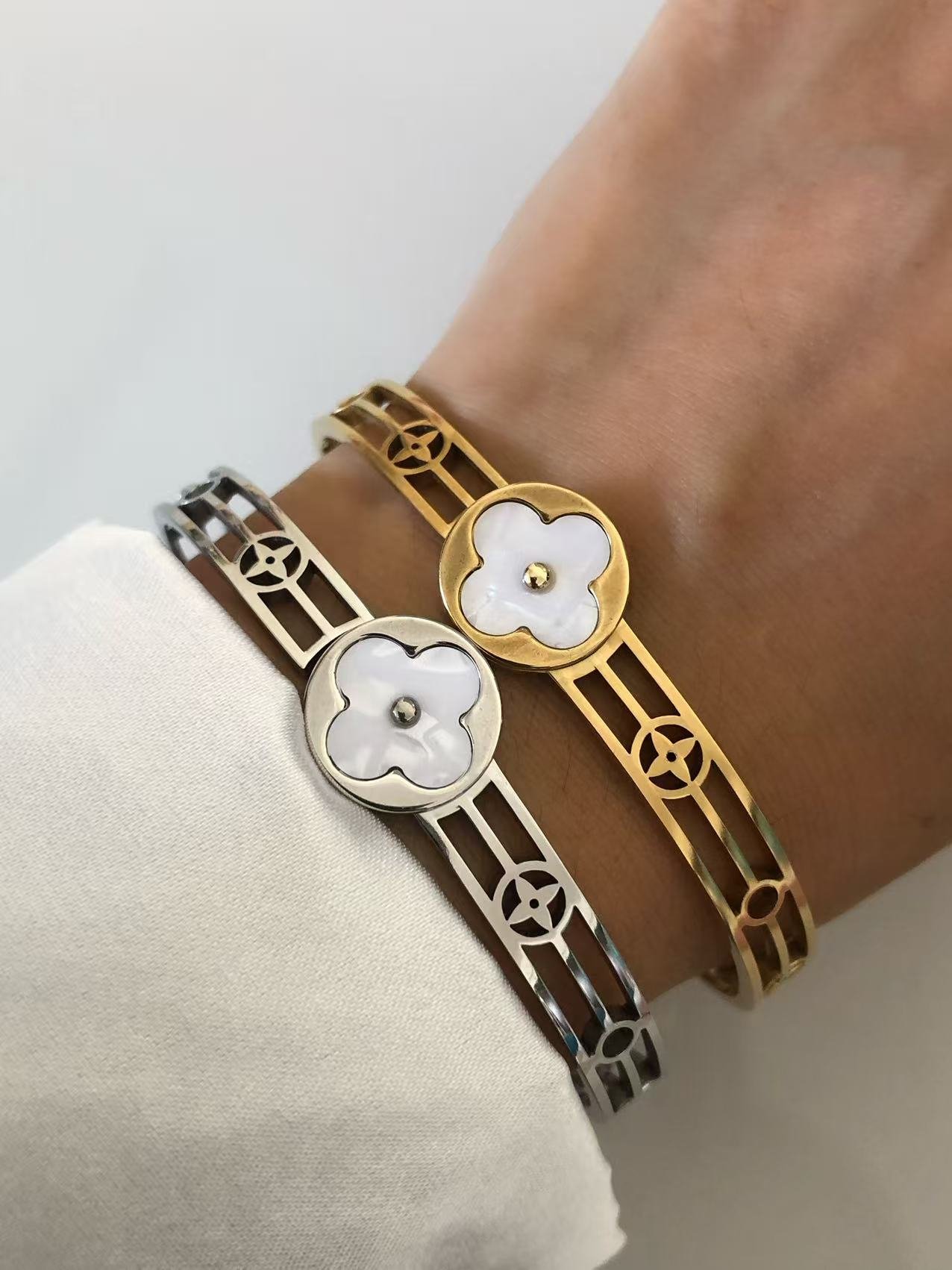 A sweet and simple everyday bangle. The clover charm adds a touch of luck and charm, and it stacks really nicely with my other bracelets. Super comfortable for daily wear.