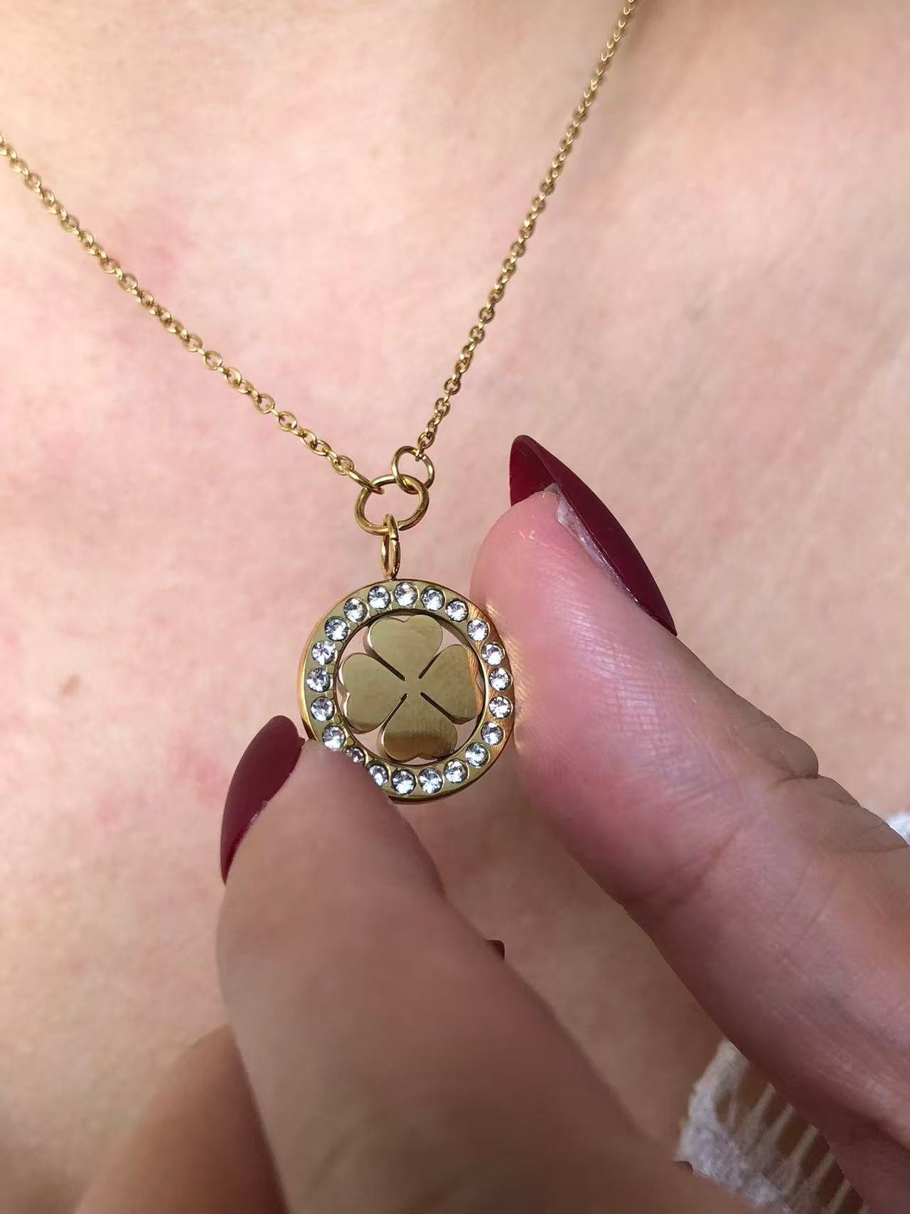 Experience versatility with our Reversible Clover Necklace. Featuring a unique design with zircon inlay on one side and black mother-of-pearl on the other, this necklace allows you to effortlessly switch between two elegant looks, making it a perfect accessory for any occasion.