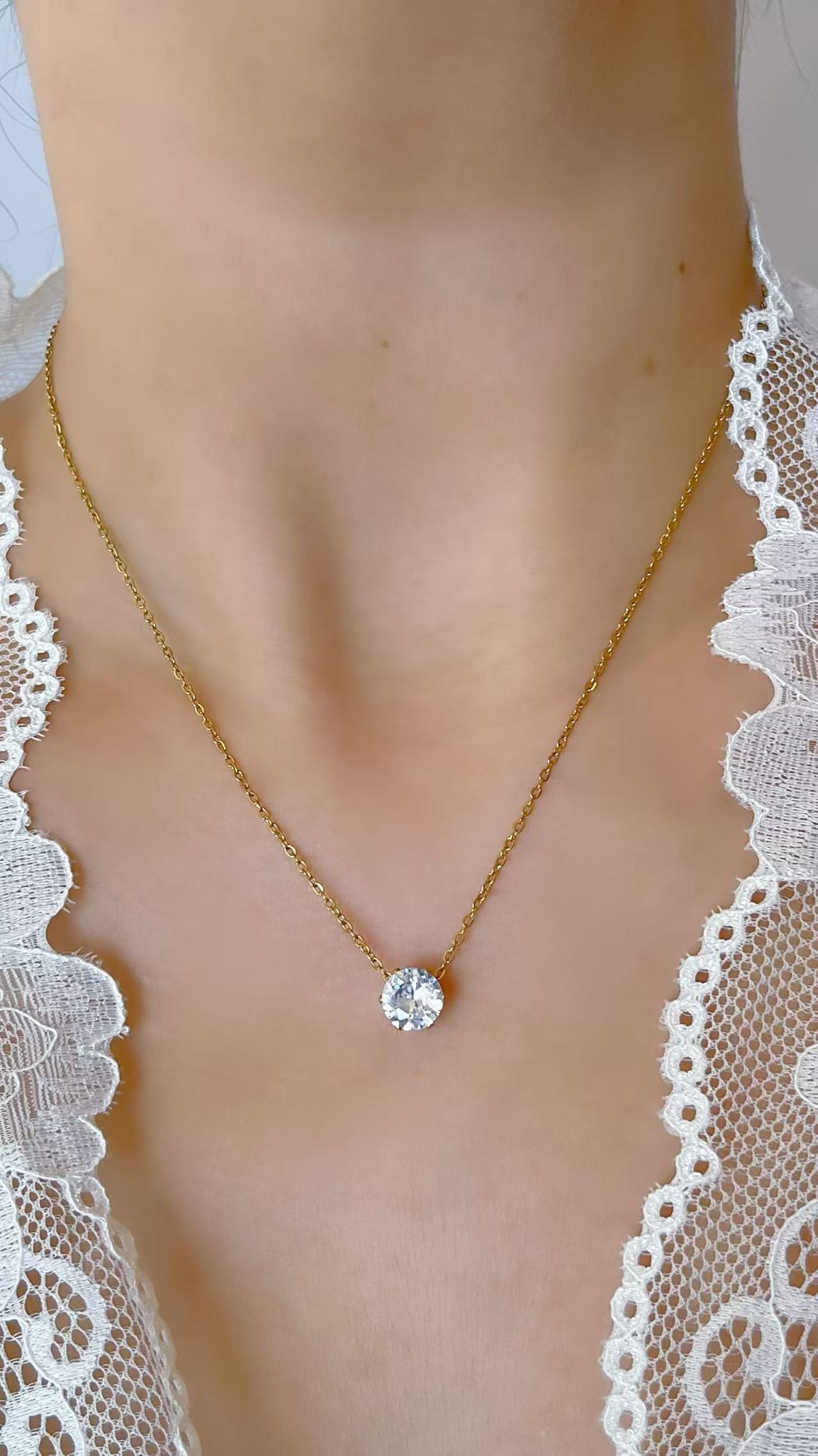 2 Carat Floating Solitaire Necklace • 18K Gold Plated Titanium Steel • Waterproof & Tarnish-Free • Looks Like Real Diamond, Everyday Luxury Sparkle!