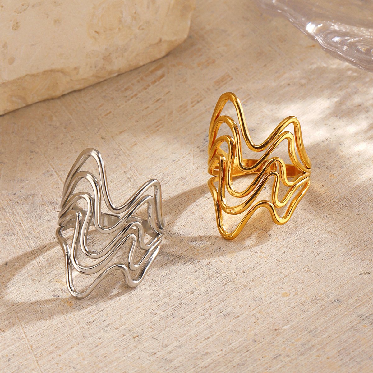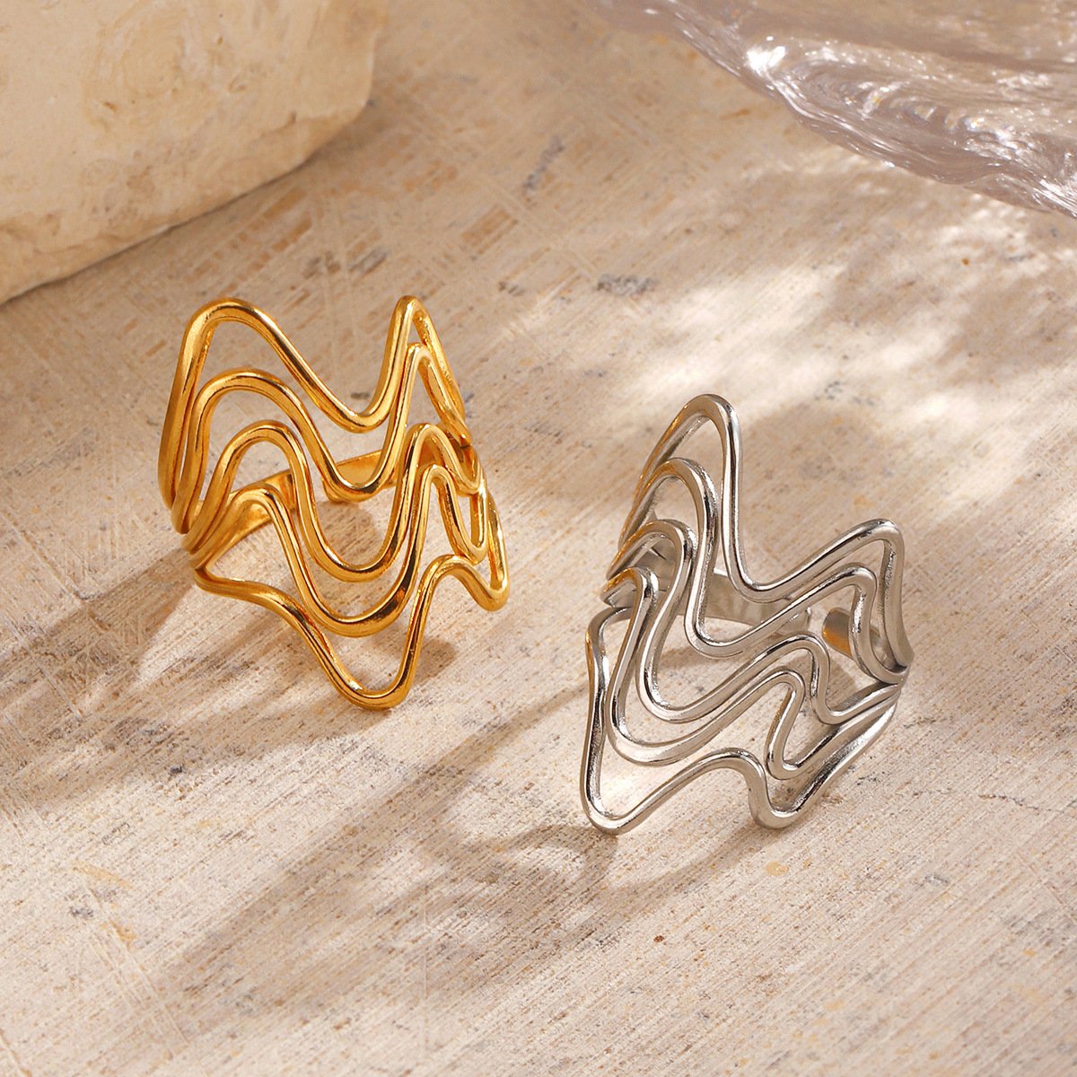 🌊Abstract Wave Ring – Sculptural Art Jewelry, 18K Gold/Silver Plated, Adjustable Open Band. Modern statement piece that’s tarnish-free!