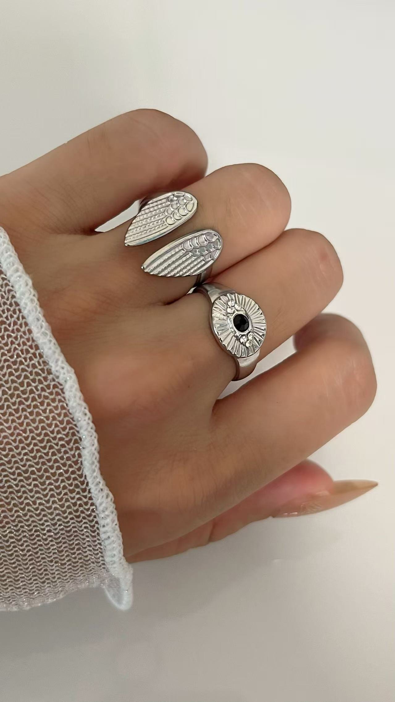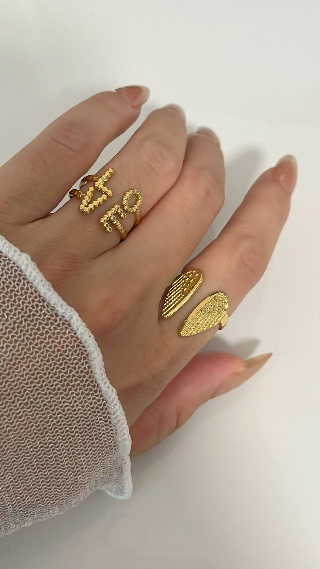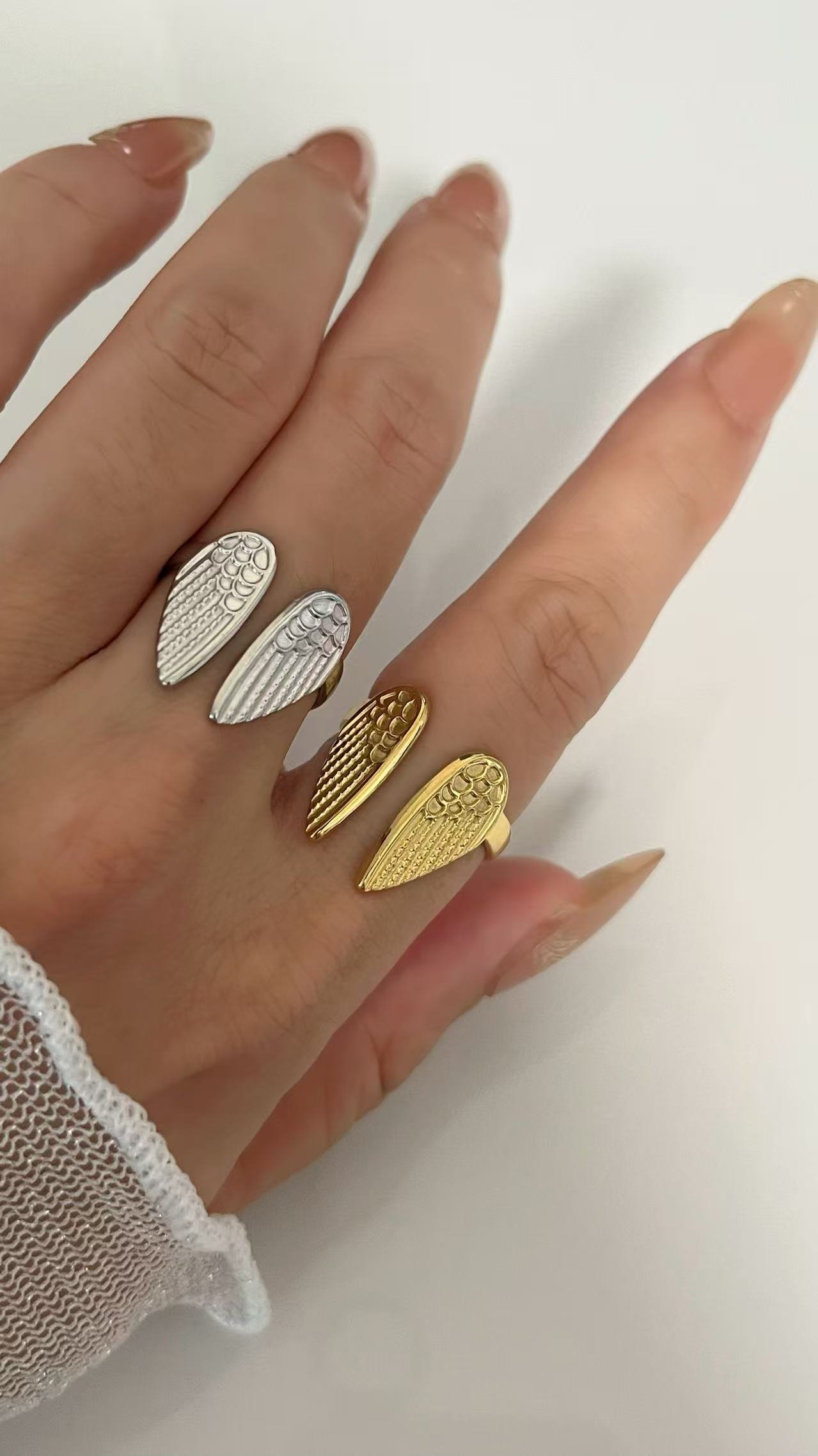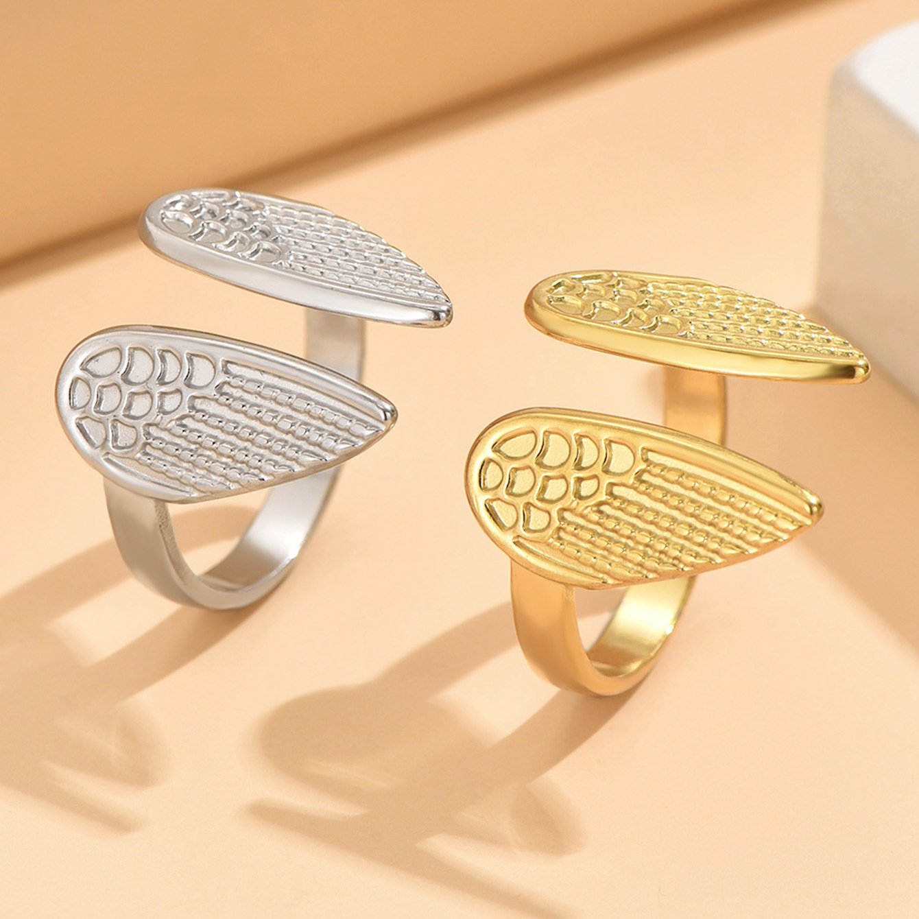 Angel Wings Textured Open Ring 18k Gold/Silver – Tarnish-Free Water-Resistant | Adjustable Titanium Steel | HEYBIJOU Symbolic Jewelry