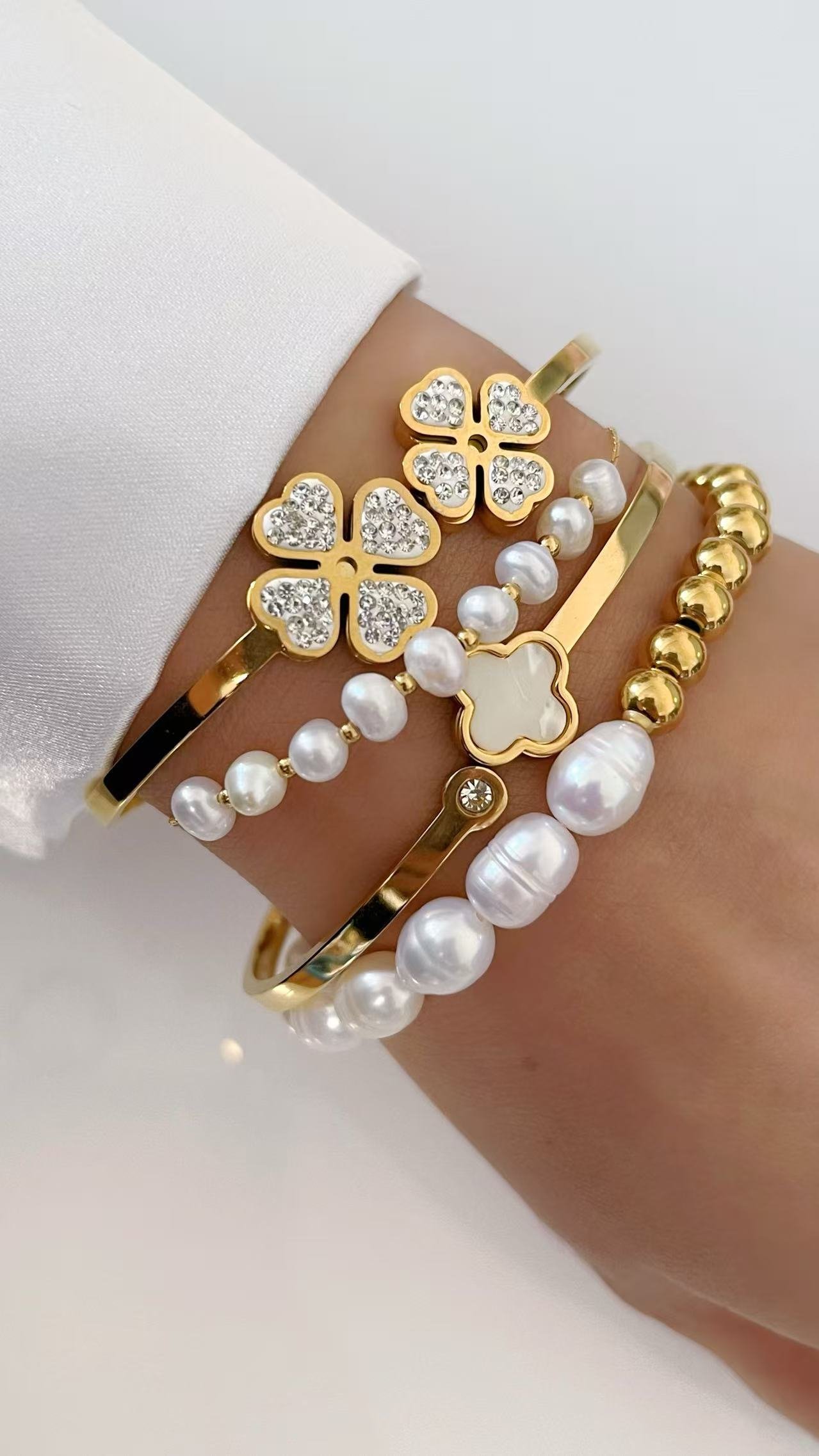 Style Tip: Wear it solo for a minimalist statement or stack it with other gold and pearl bracelets for a chic layered look.