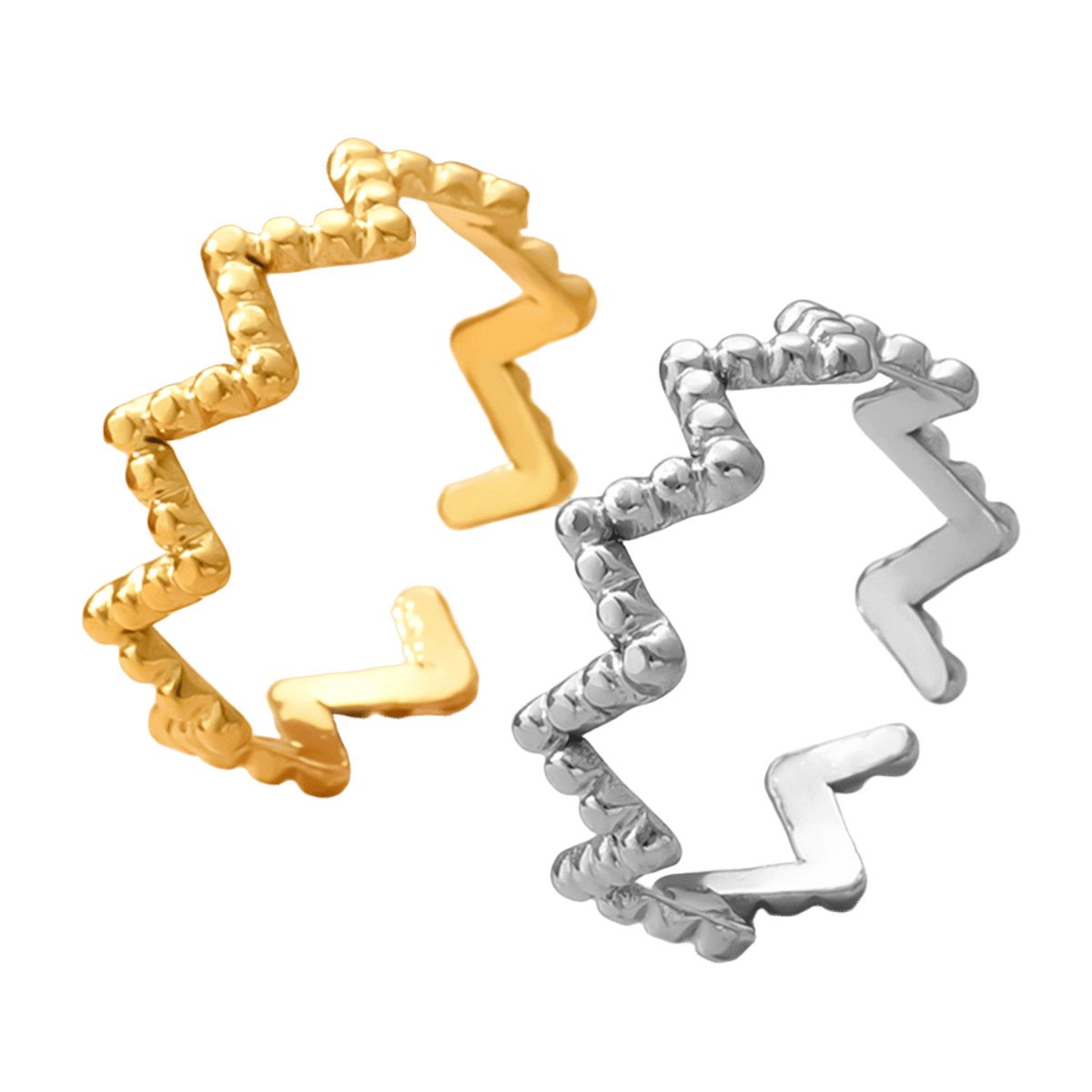 Beaded Texture Zigzag Open Ring in 18k Gold/Silver. Adjustable wave band with textured beads. Tarnish-free, water-resistant. Bold style!