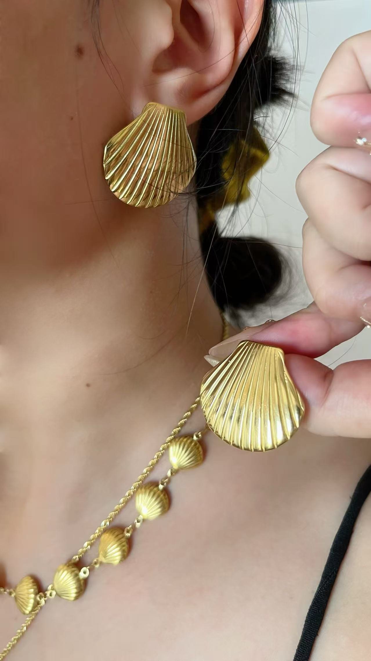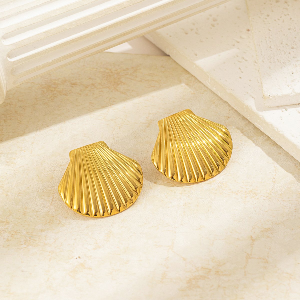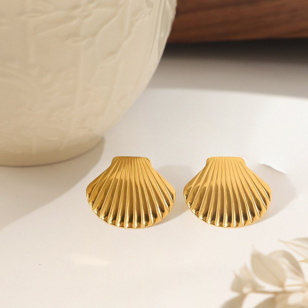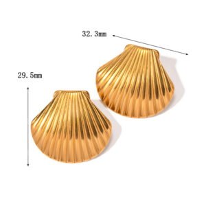 Bold Scallop Shell Stud Earrings 18k Gold/Silver – Tarnish-Free Ocean Inspired | Hypoallergenic Titanium Steel | HEYBIJOU Beach Jewelry