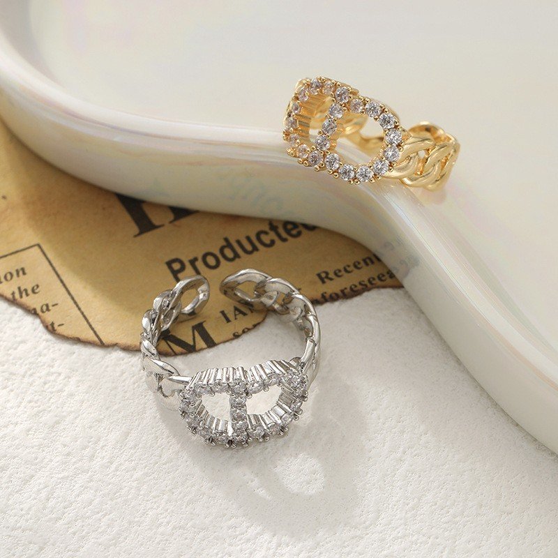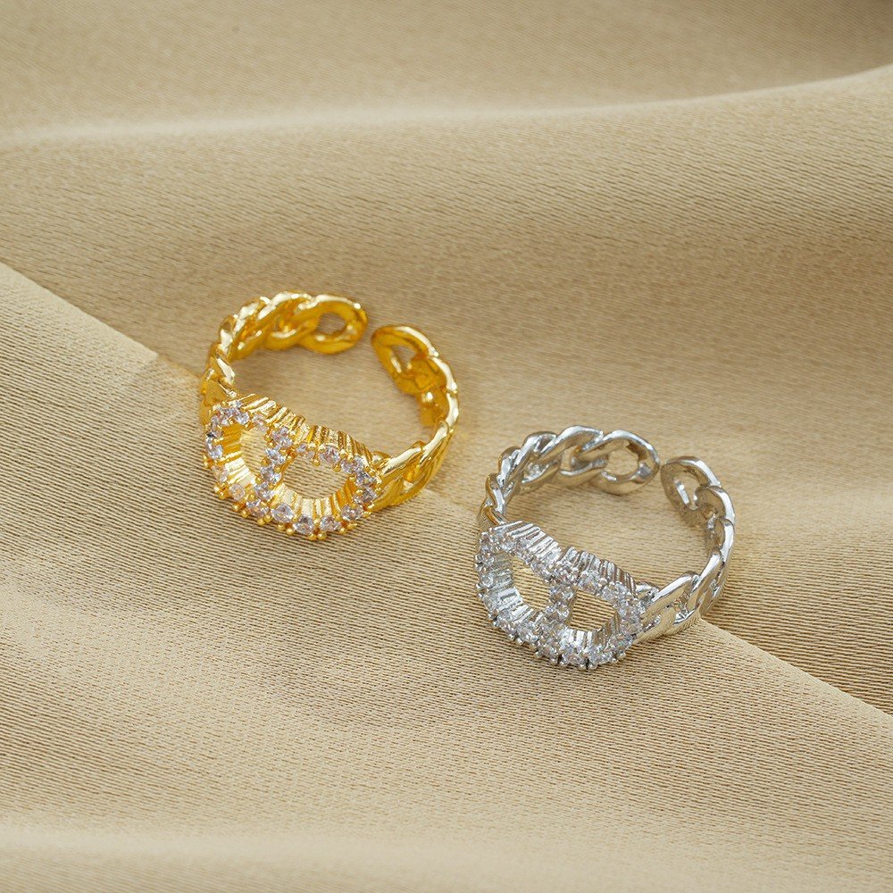 HEYBIJOU Iced CD Chain Ring – full zircon luxury in 18K gold/silver plated. Tarnish-free, waterproof, iconic open ring that turns heads!