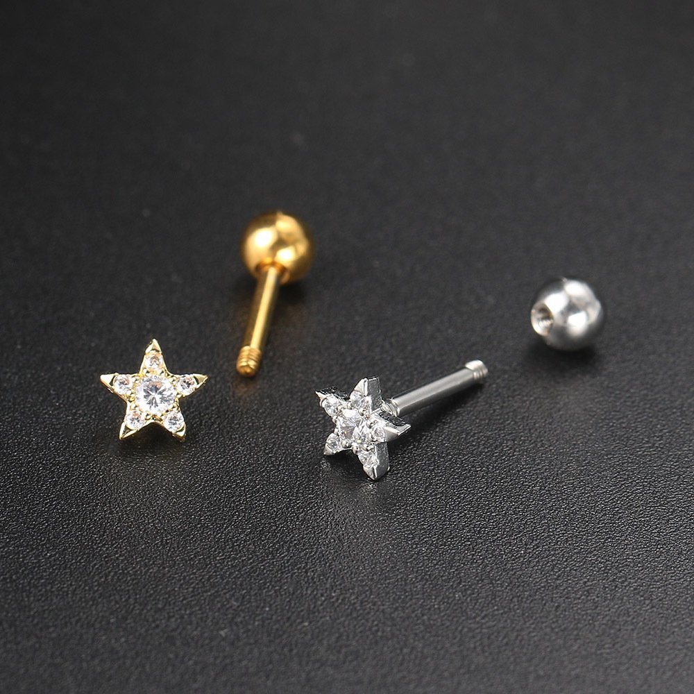 • Star Stud — A petite five-pointed star set with zircons, the perfect minimalist accent for any piercing