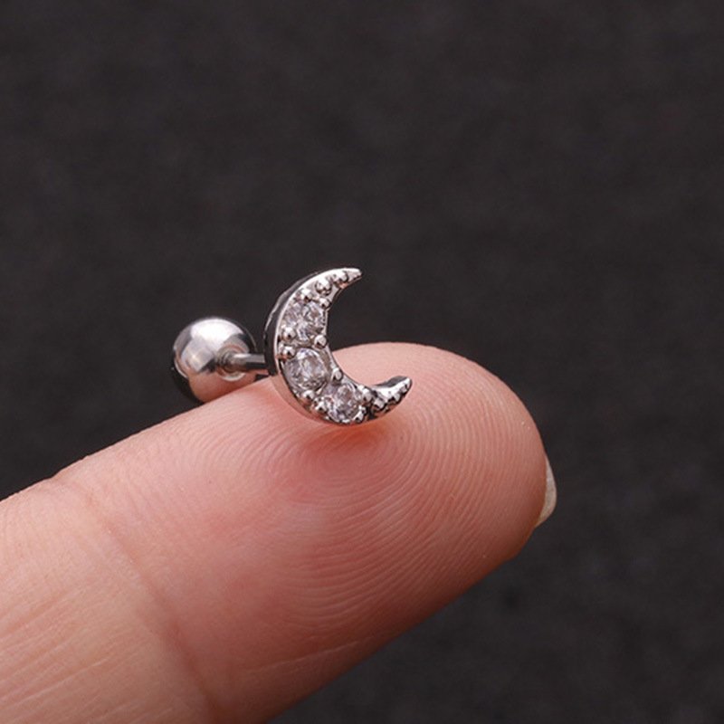 • 🌙 Crescent Moon Stud — A dainty pavé zircon crescent for your upper helix or cartilage, dripping in tiny sparkles that catch light from across the room