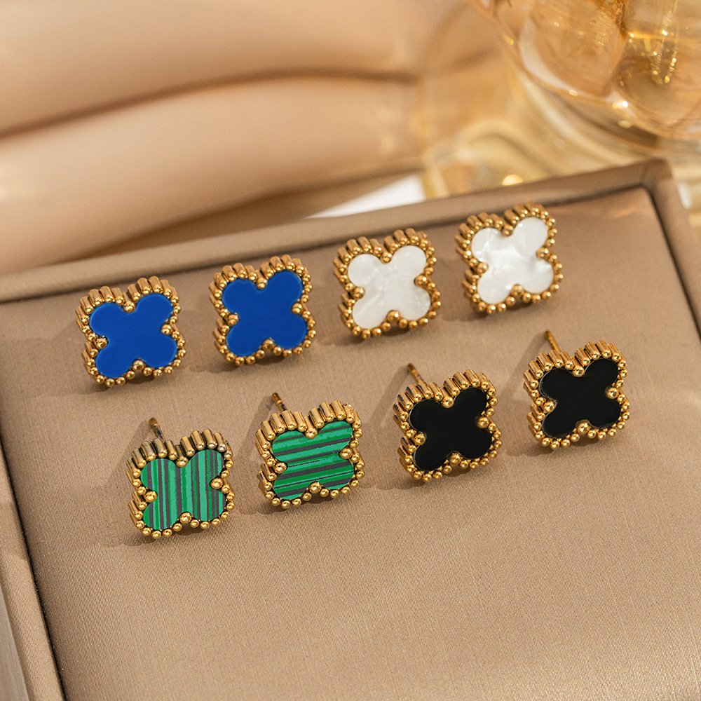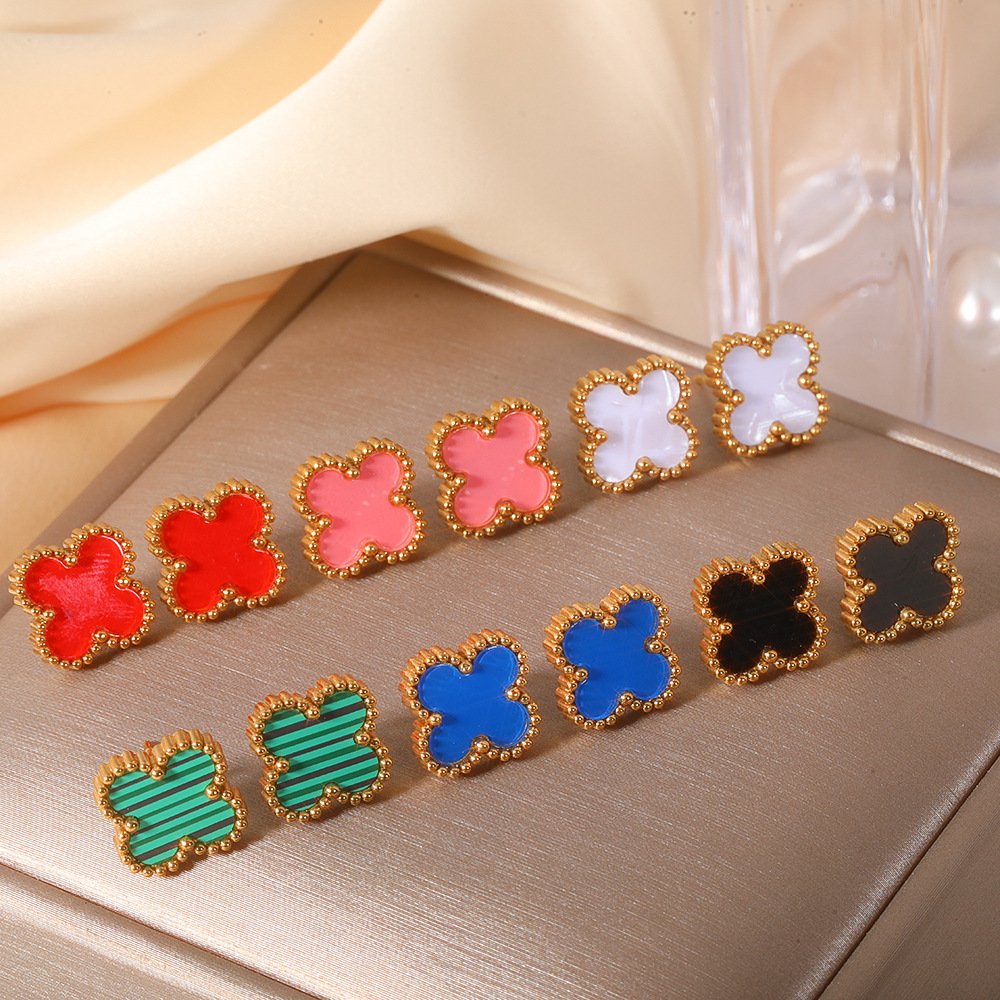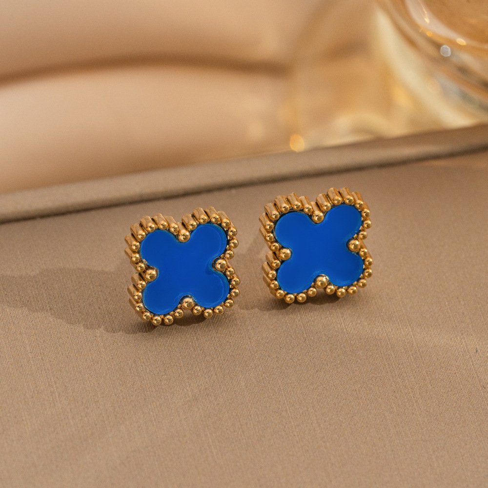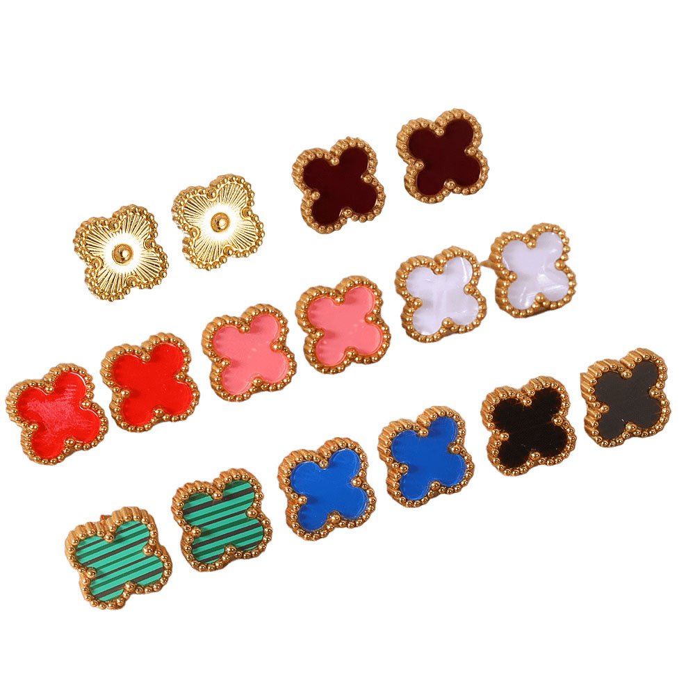 HEYBIJOU Classic Clover Stud Earrings – 9mm 18K gold plated, 8 stunning colors. Tarnish-free, waterproof iconic designer luxury!