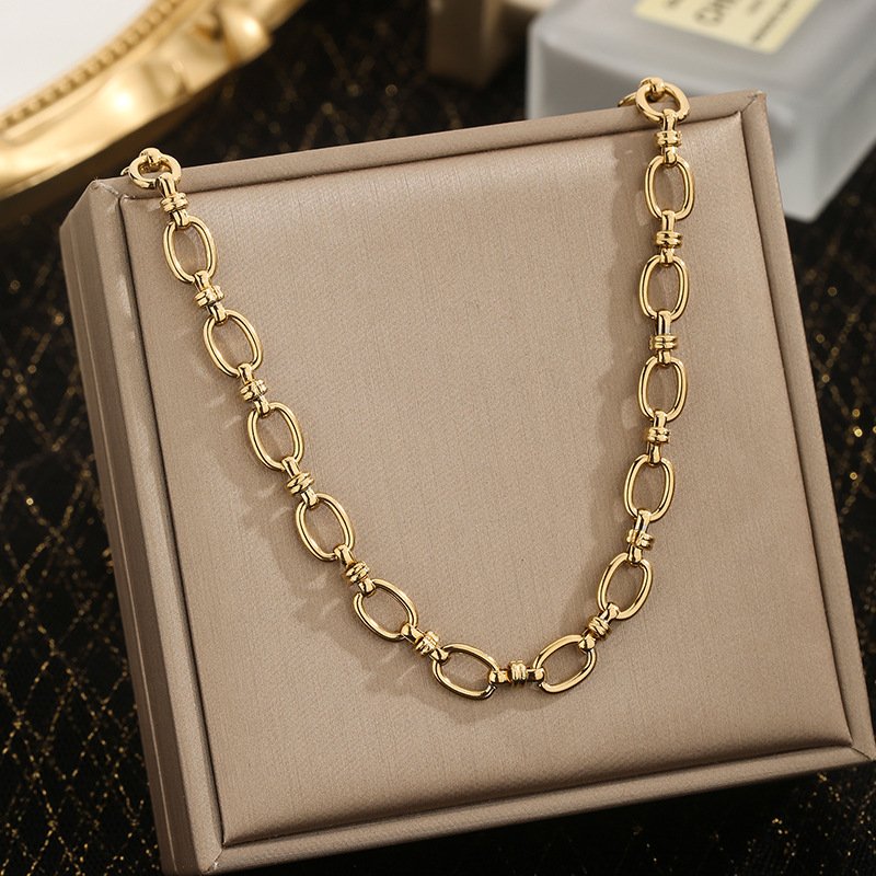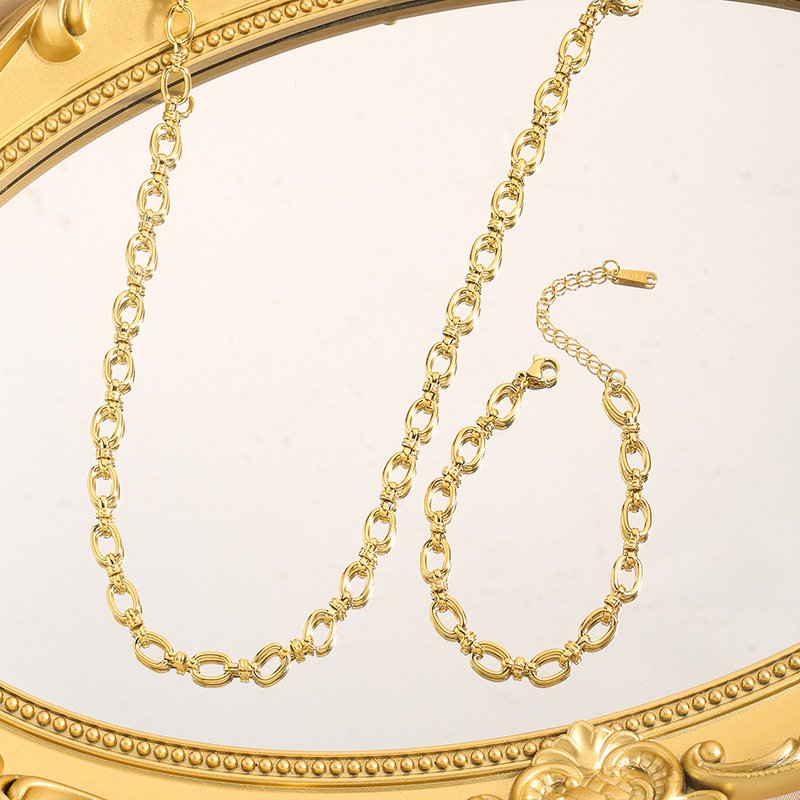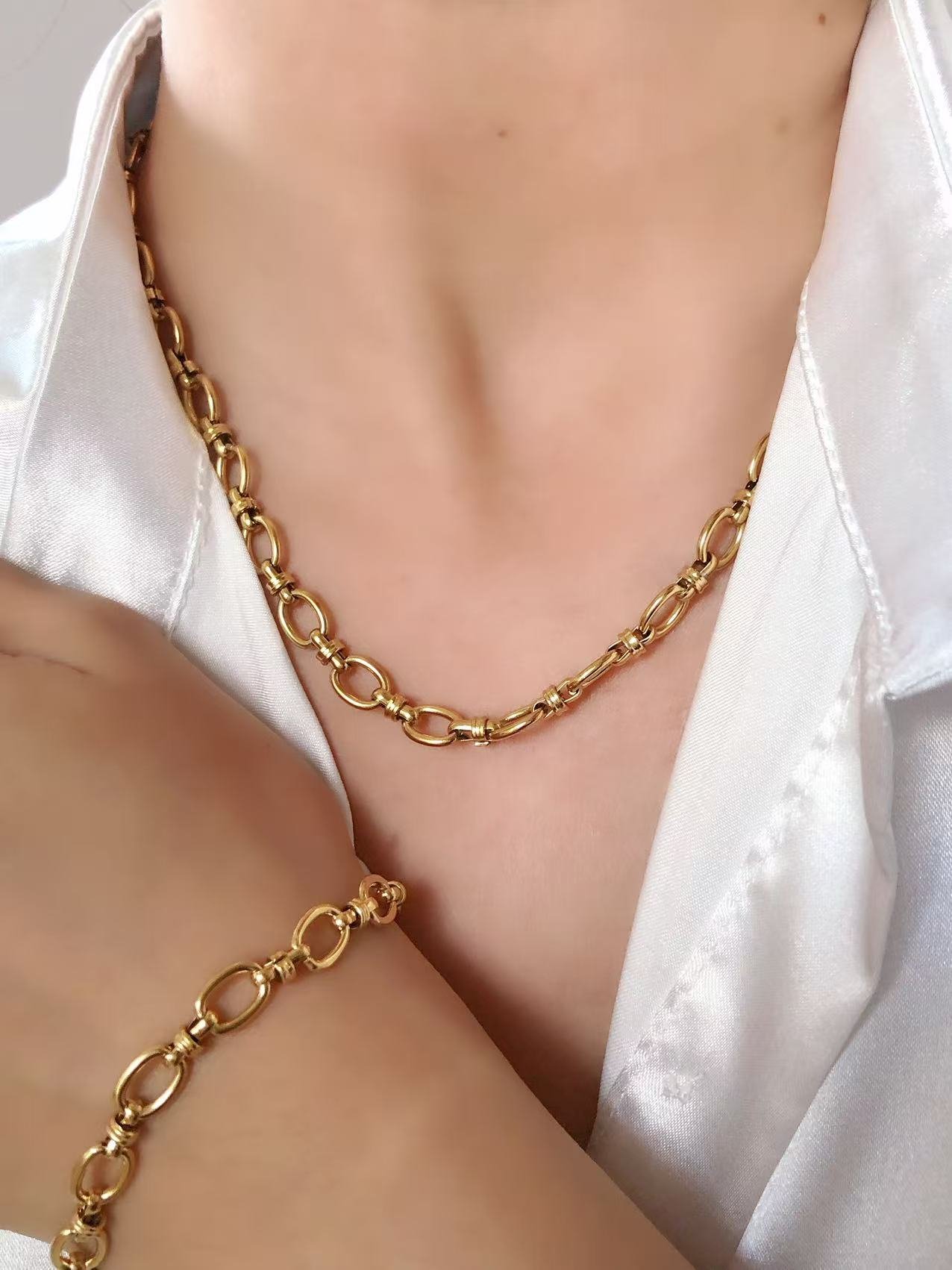 Timeless 18K gold plated titanium steel link chain set—bold, durable, and elegant in gold or silver. Perfect for daily wear or layering.