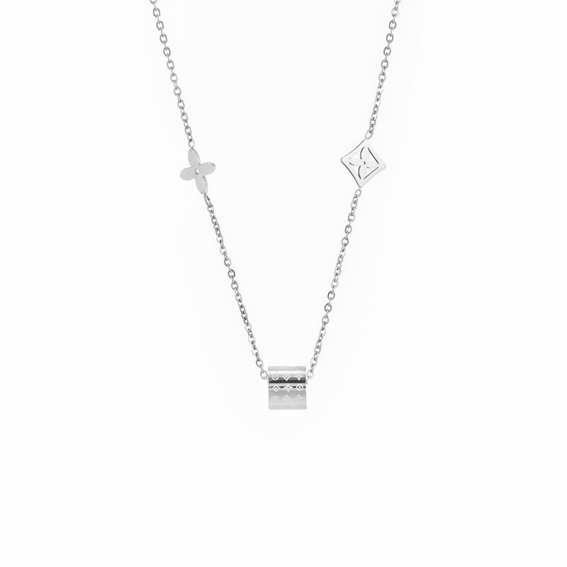 Clover barrel pendant necklace in gold or silver. Laser-engraved titanium steel, tarnish-free & water-resistant. Lucky minimalist style! 🍀✨