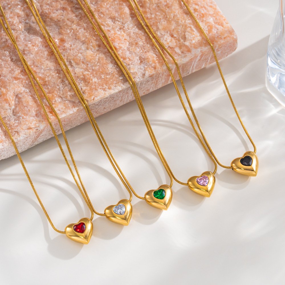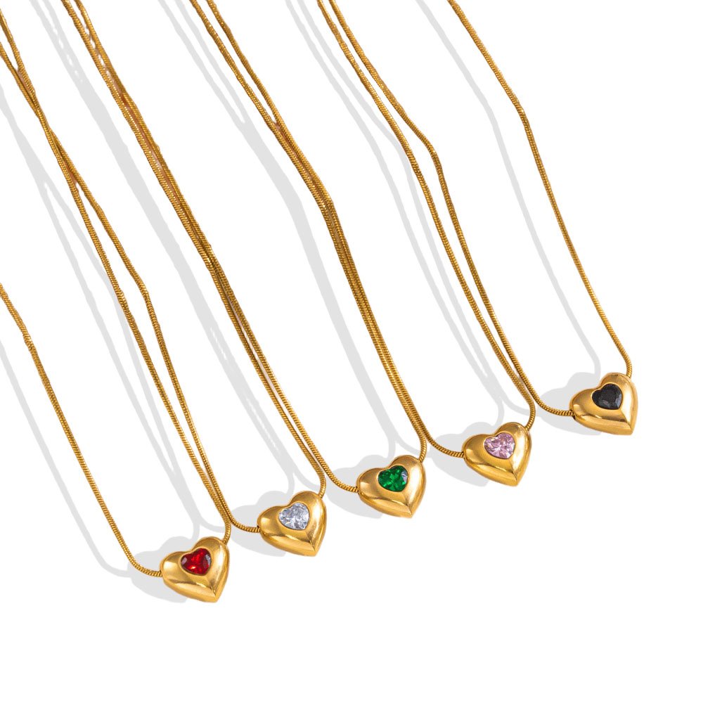 • Tarnish-free — the gold heart, snake chain, and all five zircon colors maintain their brilliance and depth indefinitely — no dulling, no discoloring, no disappointment