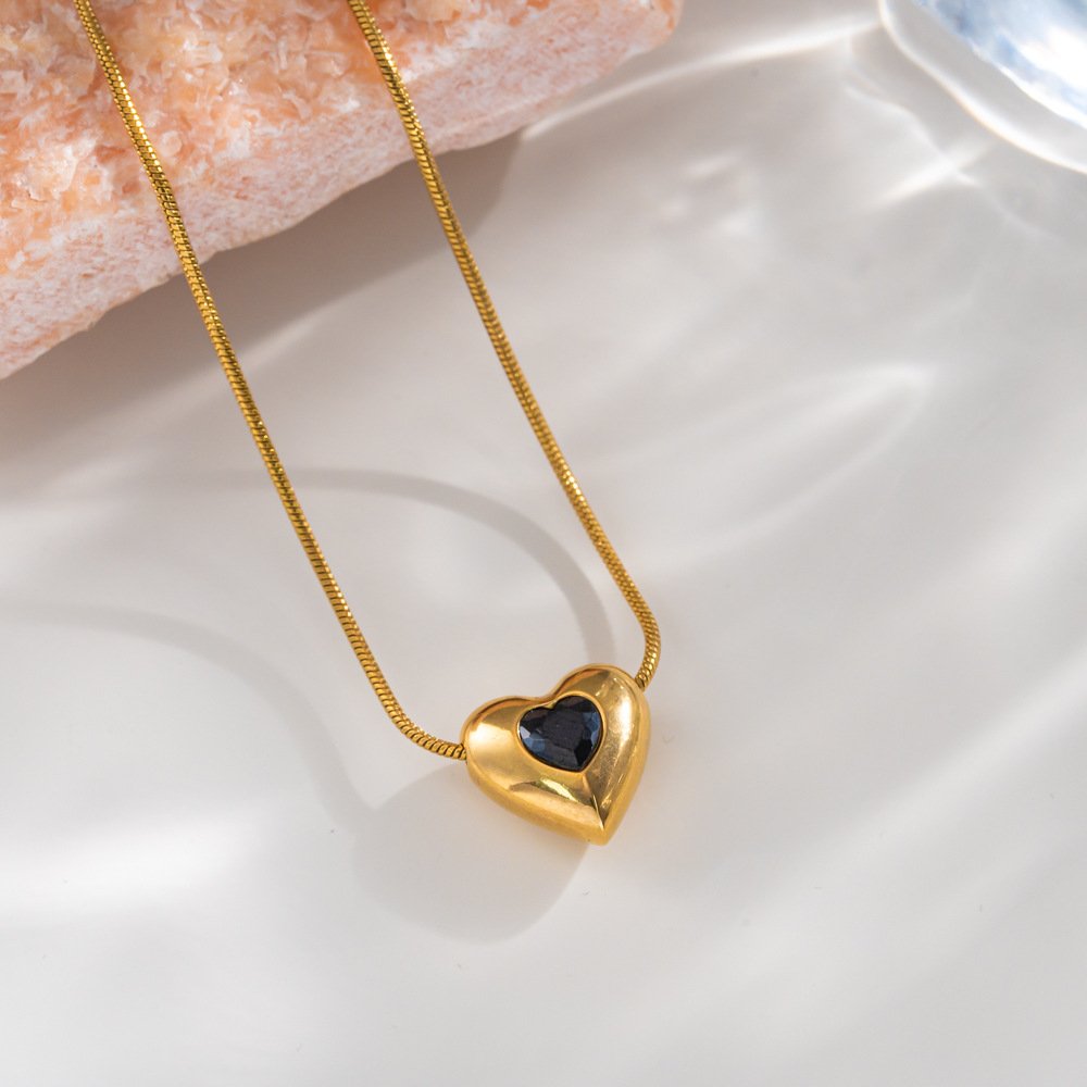 • 🖤 Jet Black — dramatic, mysterious, and unexpectedly stunning. A black zircon heart set into a gold puffy pendant is a combination that feels entirely original — edgy and elegant simultaneously, for the woman who refuses to be predictable
