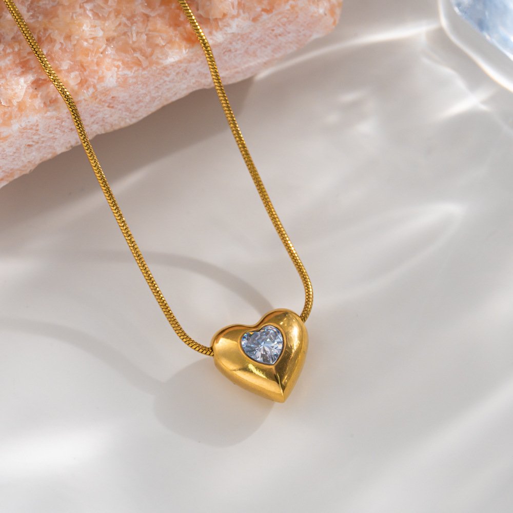 Puffy gold heart necklace with heart zircon on snake chain — 5 colors, tarnish-free & water-resistant. The heart necklace of your dreams. ❤️✨