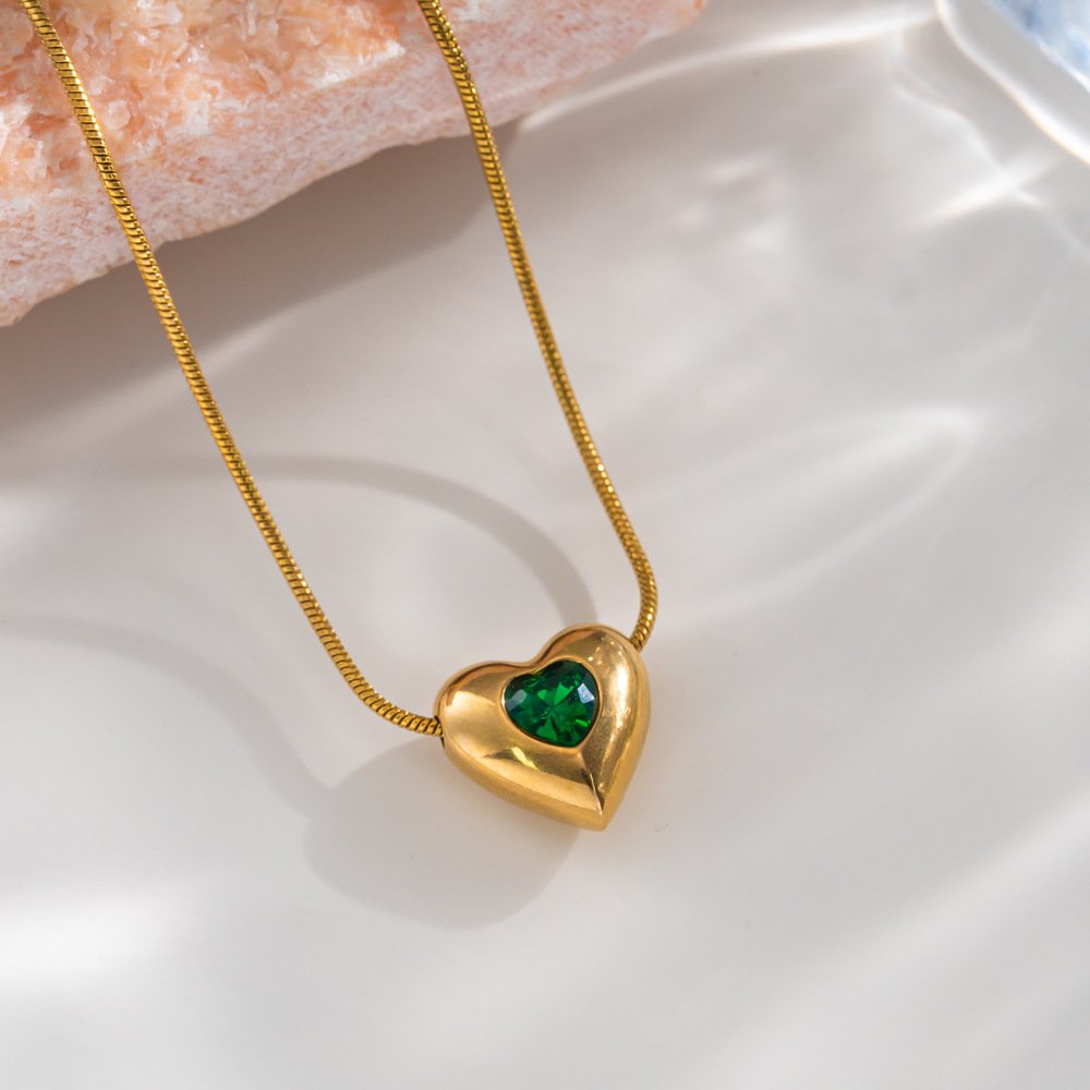• 💚 Emerald Green — rich, jewel-toned, and deeply luxurious. The emerald heart zircon brings a gemstone gravitas to the pendant that makes it feel genuinely precious. For the woman who wears color with confidence and intention
