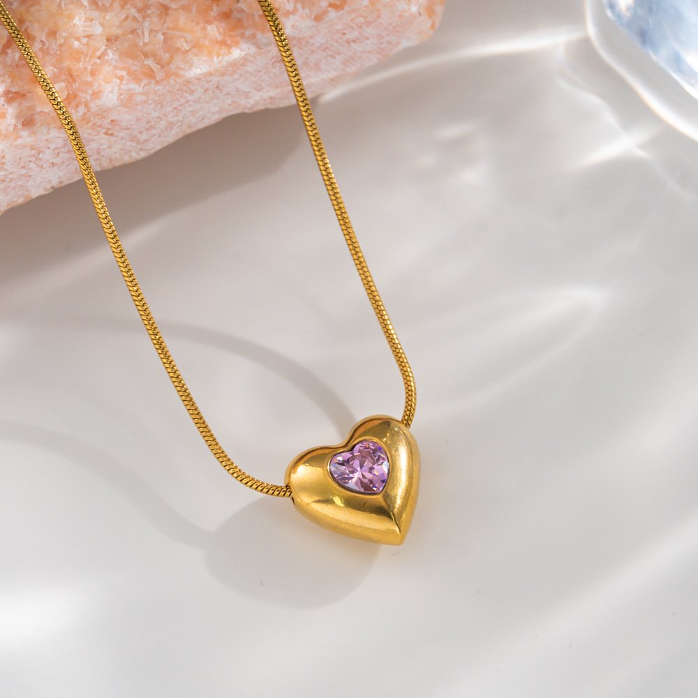 • 🩷 Blush Pink — soft, romantic, and sweetly feminine. The pink zircon gives the gold heart a warm, rosy glow that feels like the most wearable, most lovable version of this pendant. Delicate without being dainty, sweet without being coy