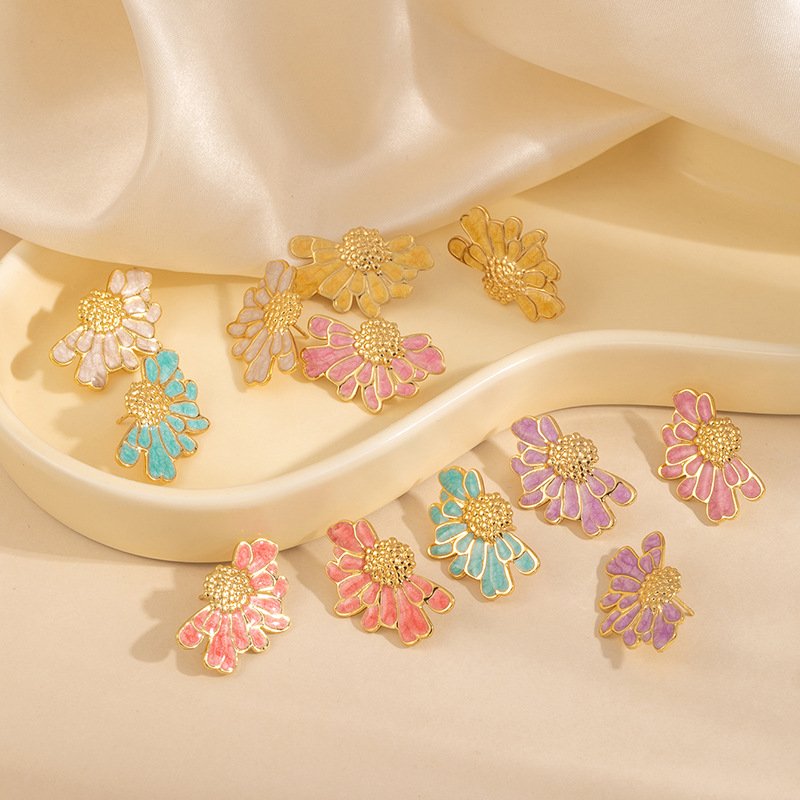 Discover HEYBIJOU’s colorful enamel daisy stud earrings—vibrant pastel blooms on 18K gold-plated titanium steel. Tarnish-free, water-resistant luxury!