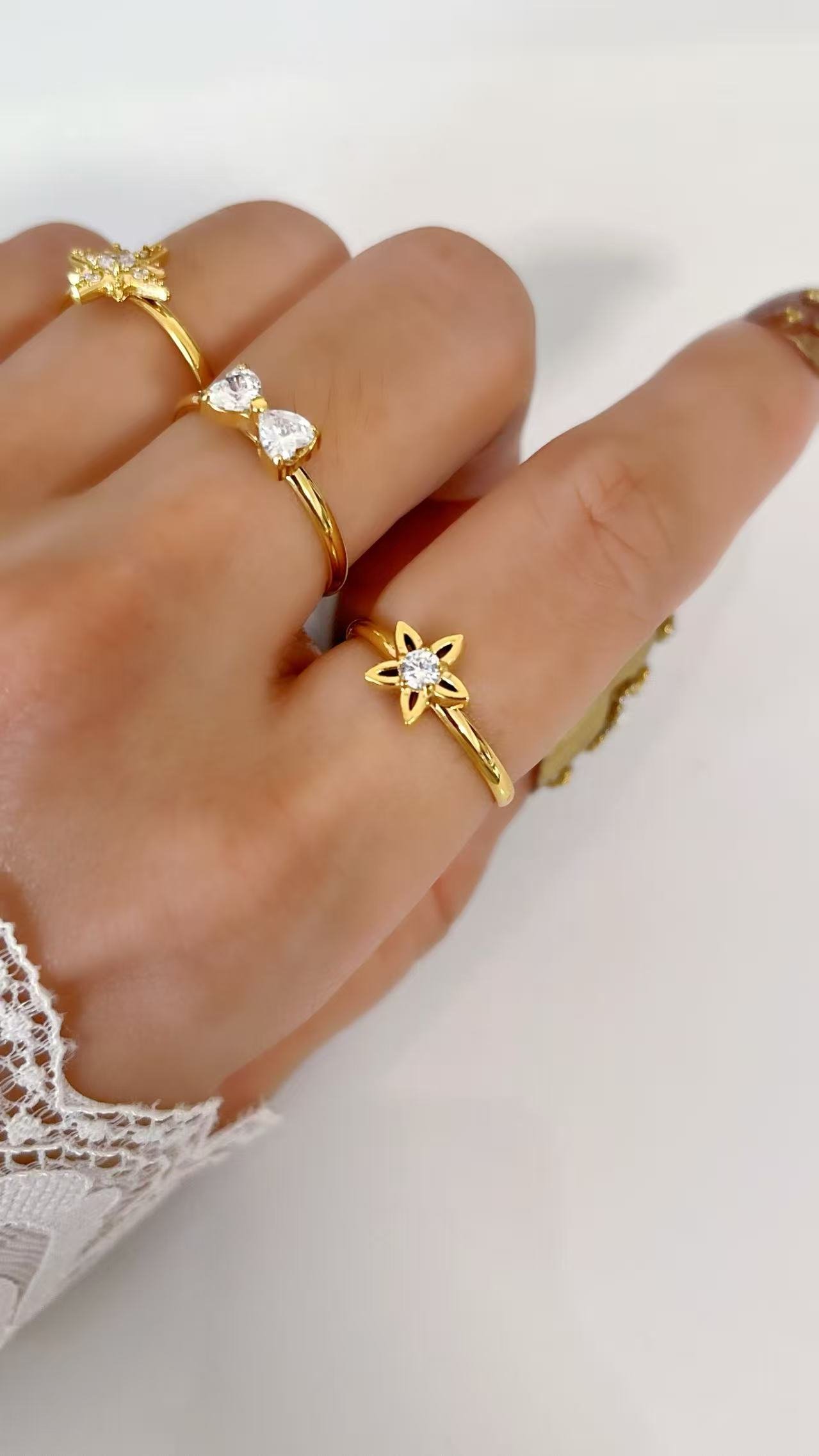 Shimmer softly with HEYBIJOU Dainty Zircon Star Whisper Ring—18K gold-plated open cuff with zircon heart on titanium. Tarnish-free, water-resistant delicacy for starry finesse!