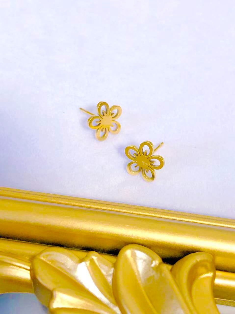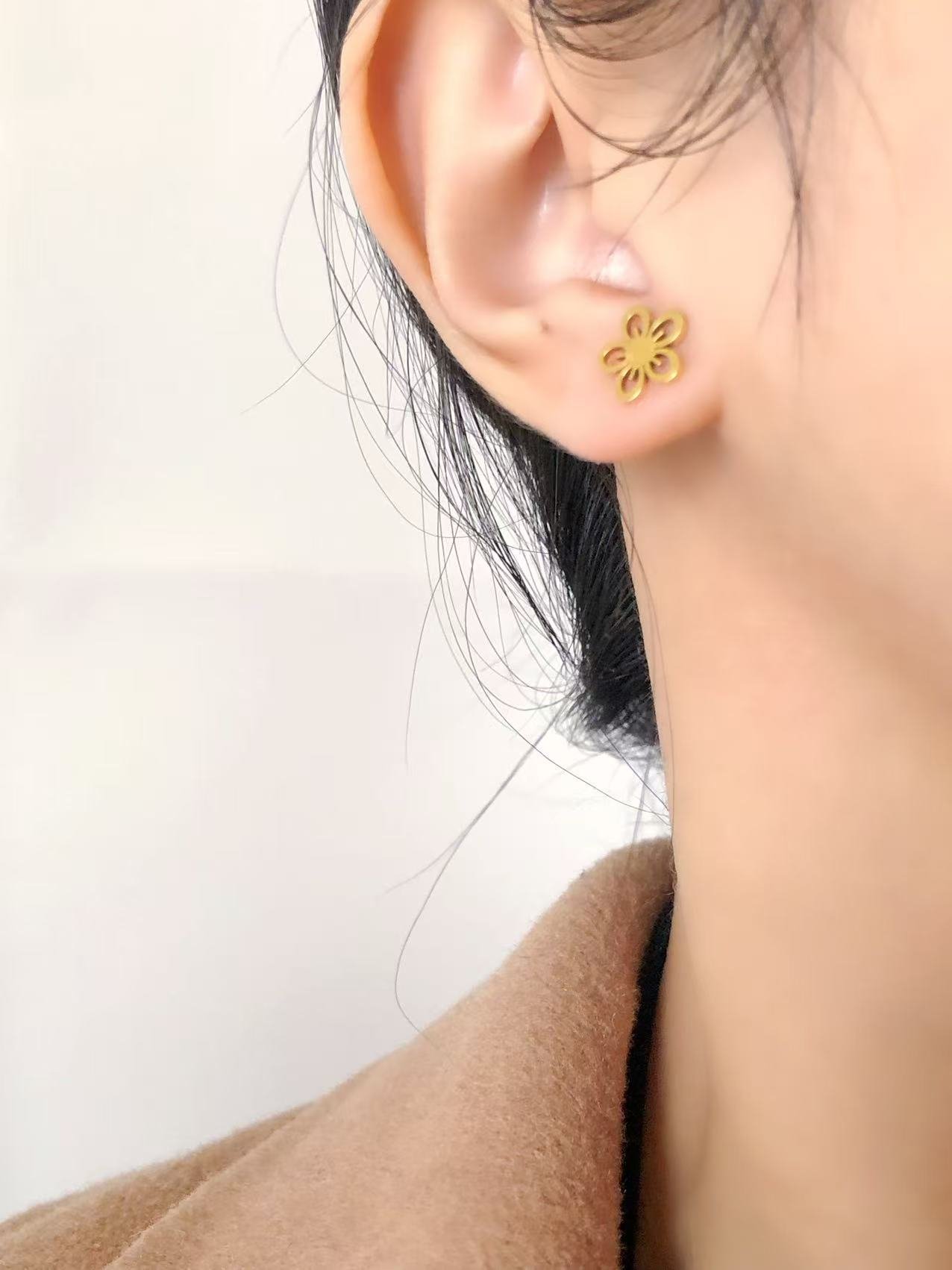 Gold daisy flower stud earrings in 18k gold. Cute cutout petal design, tarnish-free & water-resistant. Sweet floral jewelry. Shop HEYBIJOU!
