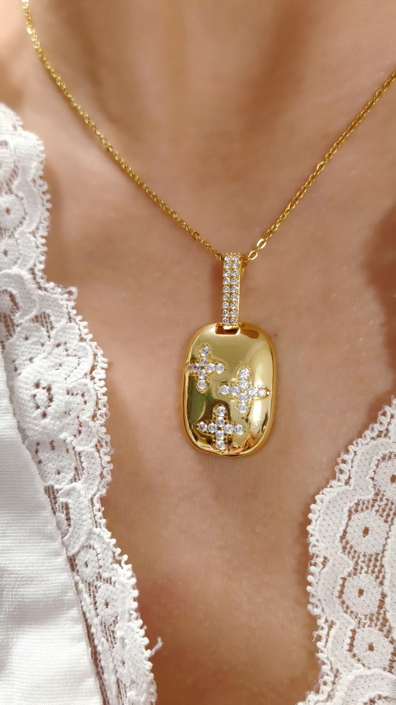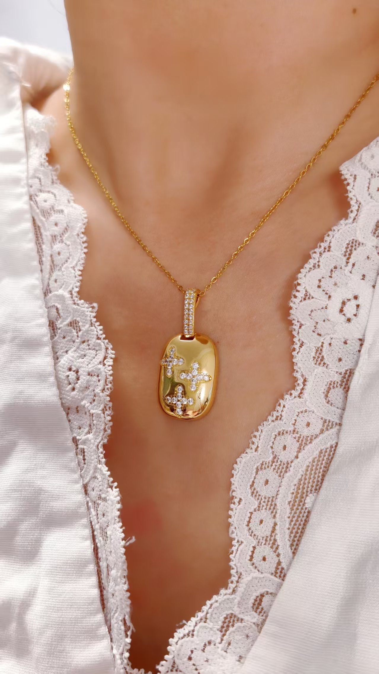 Puffy dome pendant necklace with pavé zircon clovers in 18K gold or silver — bold, tarnish-free & water-resistant. Make every look iconic. ✨