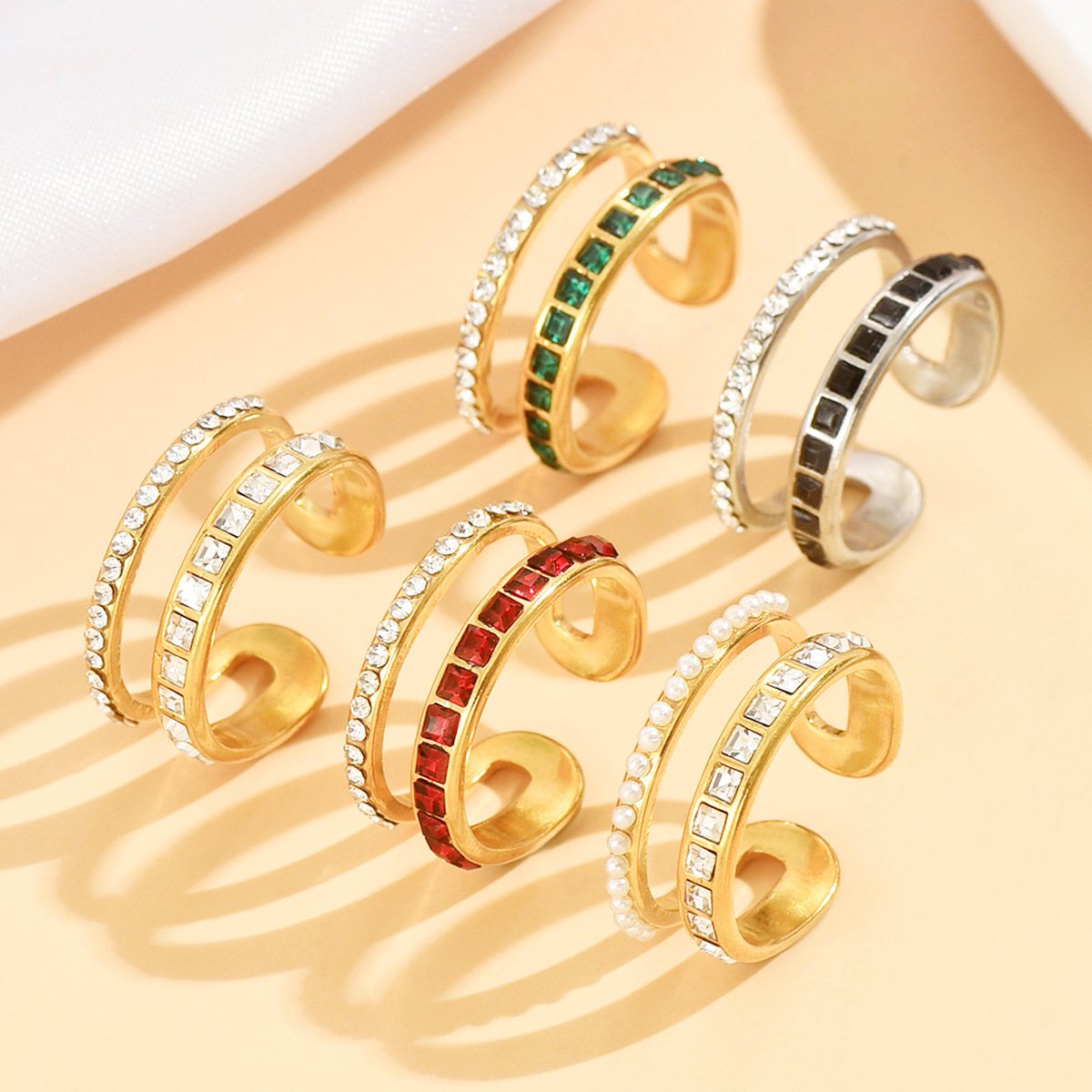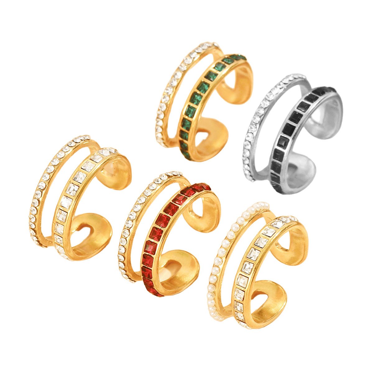 Double band crystal stack ring in 5 colors – clear, emerald, black, ruby, pearl. 18K gold titanium steel. Tarnish-free sparkle! 💍✨