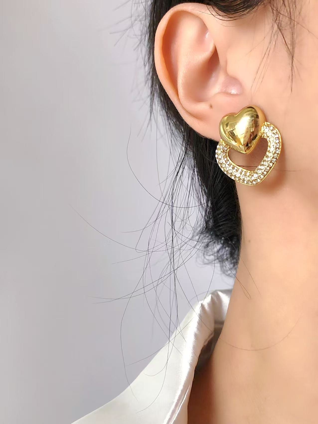 At 2.4 x 2.5cm (approximately 1 inch), these hearts make a bold, confident statement without being overwhelming. The substantial size showcases the intricate detail and allows both hearts to shine beautifully. Crafted from premium titanium steel with luxurious 18k gold plating, these earrings feature quality construction with comfortable weight (9g) that feels substantial yet wearable. The dimensional double-heart design creates beautiful shadows and depth that enhance their visual impact.