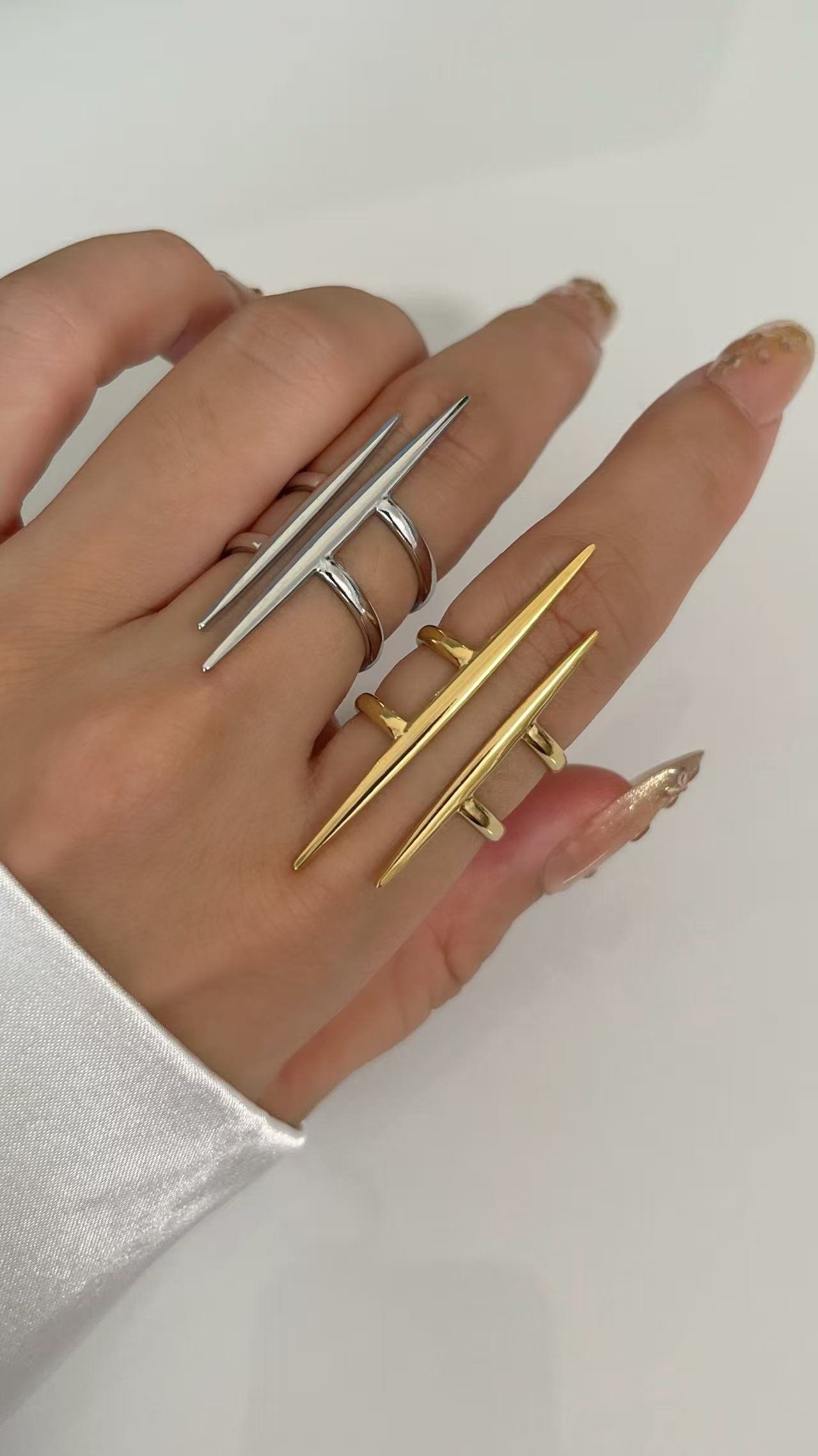 🔥Double Spike Open Ring – 18K Gold/Silver Plated, Tarnish-Free & Adjustable. Edgy minimalist statement jewelry. Available in 2 finishes!