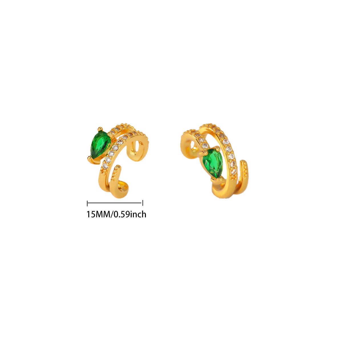 Emerald green zircon ear cuff in 18K gold — double band, no piercing, pure luxury. Tarnish-free & water-resistant. Wear your boldest self. 💚