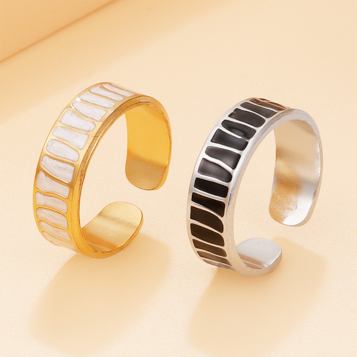 Meet the Enamel Groove Open Ring — a sleek, contemporary statement piece crafted for the modern jewelry lover. With its clean enamel inlay and sculpted groove pattern, this ring strikes the perfect balance between bold and refined. Available in 18k gold plated or silver plated titanium steel, it’s designed to elevate any look with effortless elegance.