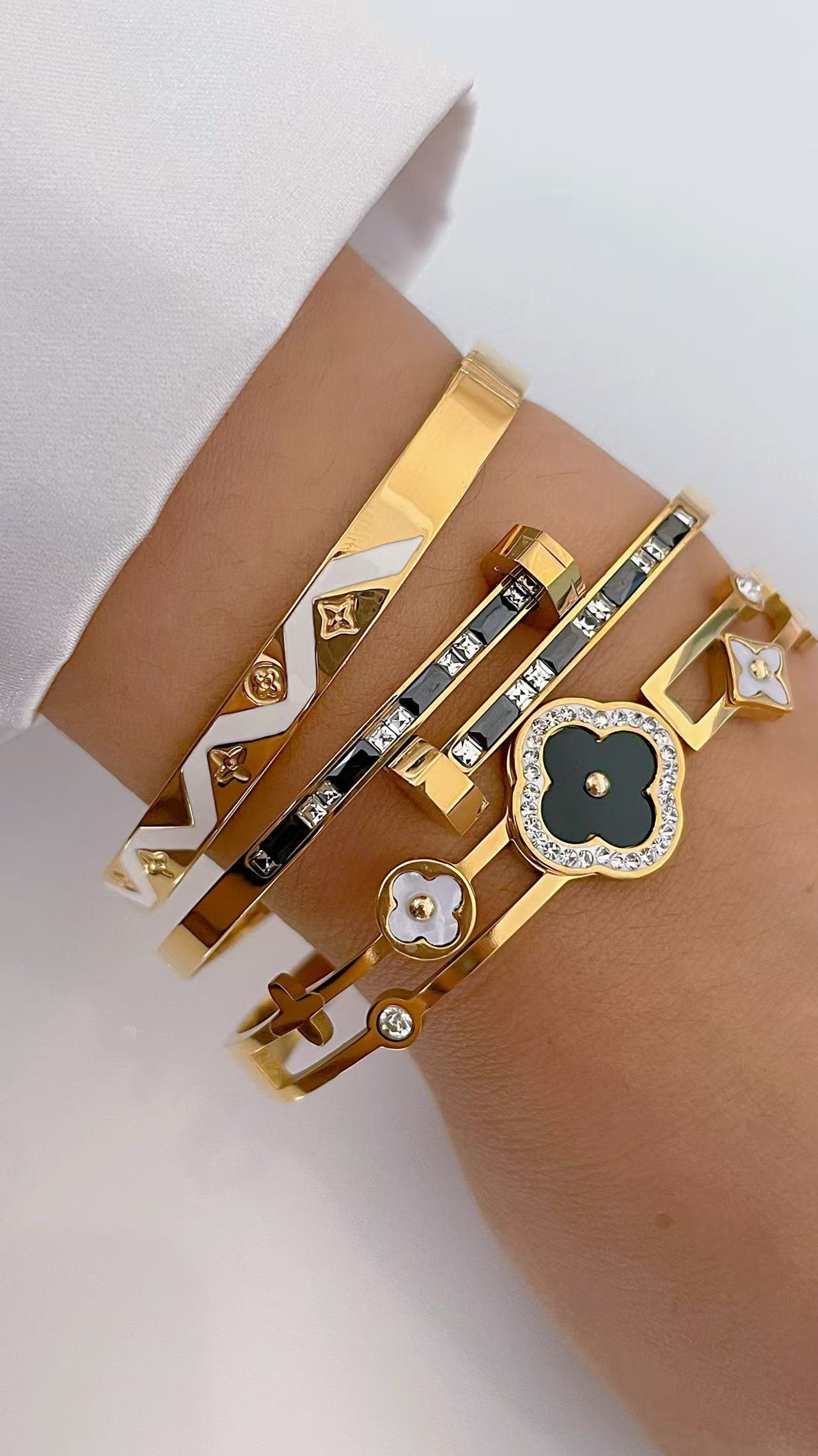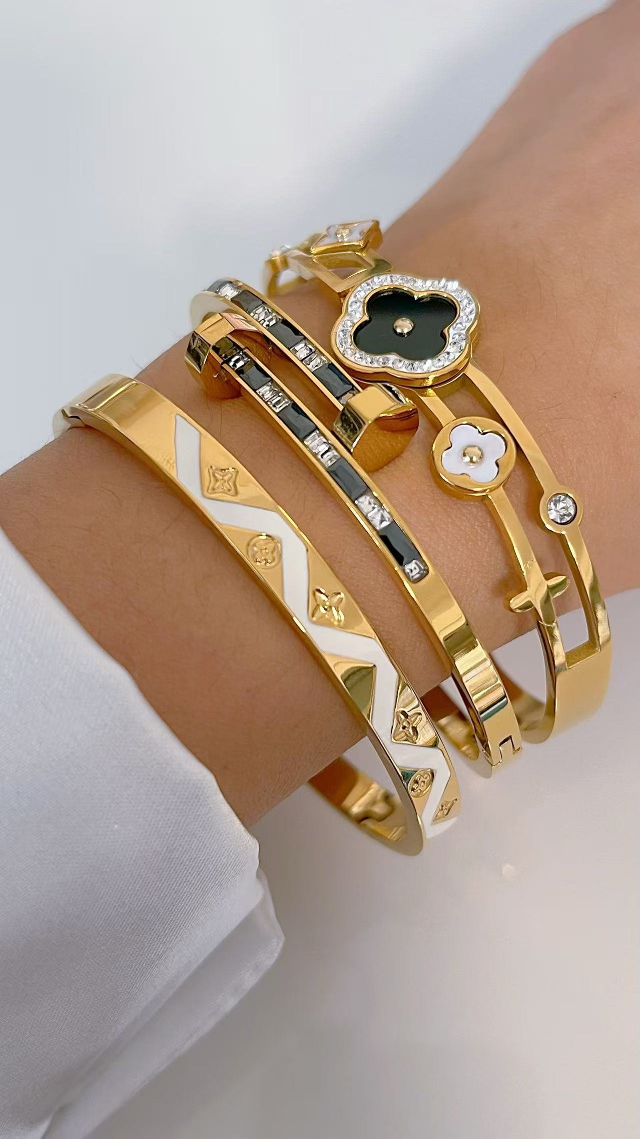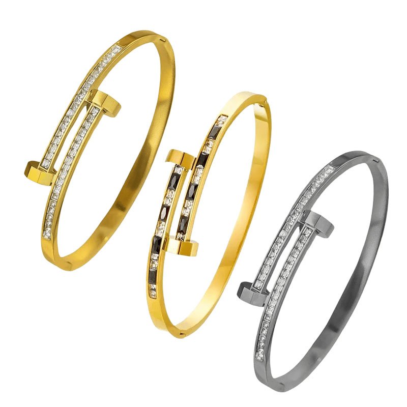 Eternal Nail Zircon Bangle – Dual-nail titanium steel in 18K gold or silver. Fully waterproof, tarnish-free, double zircon rows – iconic designer nail cuff that lasts forever!