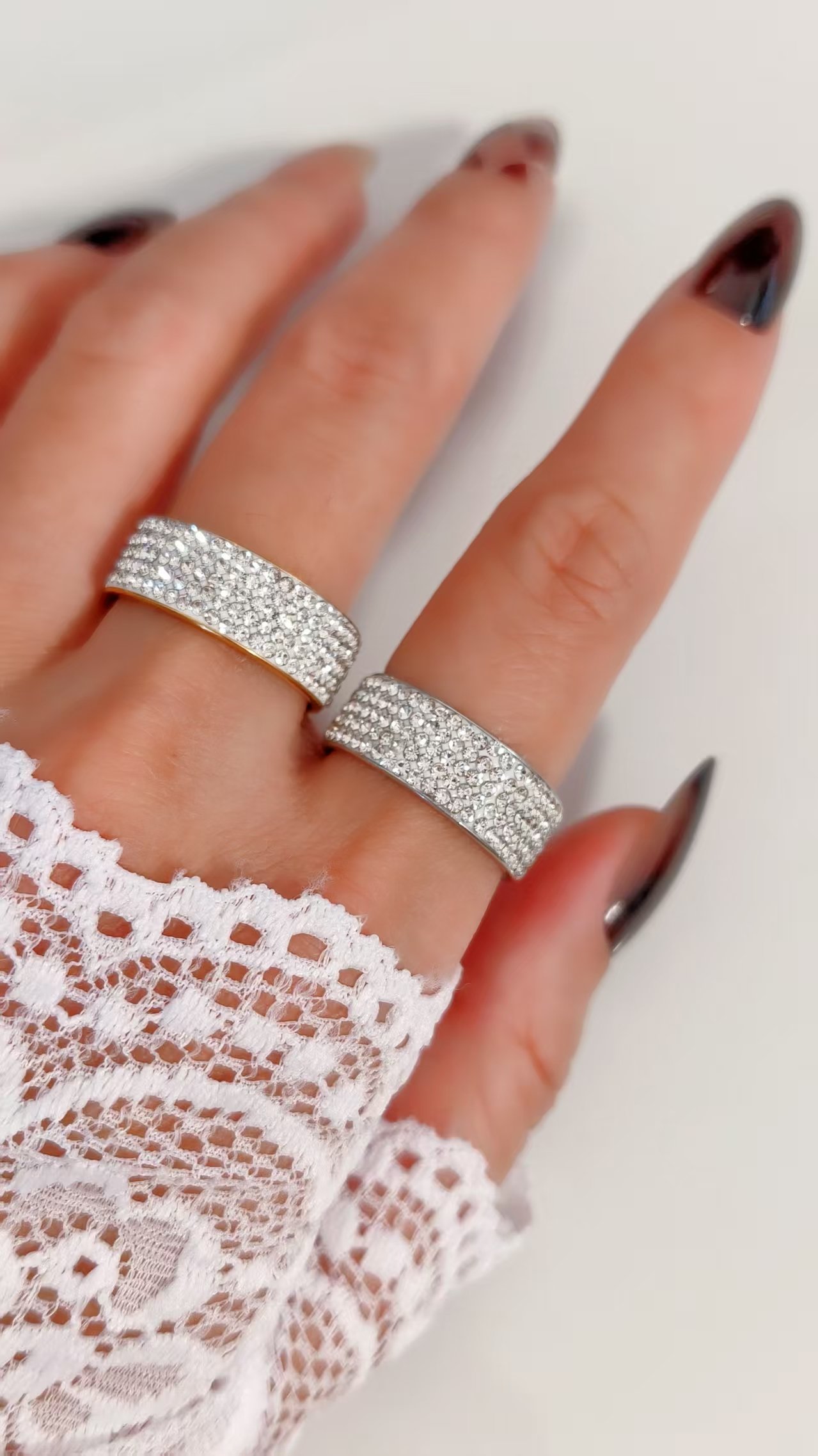 Crafted on ultra-durable titanium steel with your choice of luxurious 18K gold or silver plating, this ring boasts exceptional strength, lightweight comfort, and that authentic premium metallic finish. The zircons are precisely aligned for flawless depth and uninterrupted shimmer, turning the wide band into a shimmering focal point with no visible metal breaks. Available in sizes #6 to #11, it offers a comfortable, true-to-size fit – substantial enough to command attention yet perfectly balanced for all-day wear, ideal for stacking, wearing solo as a bold accent, or pairing with any look from everyday chic to evening glamour!