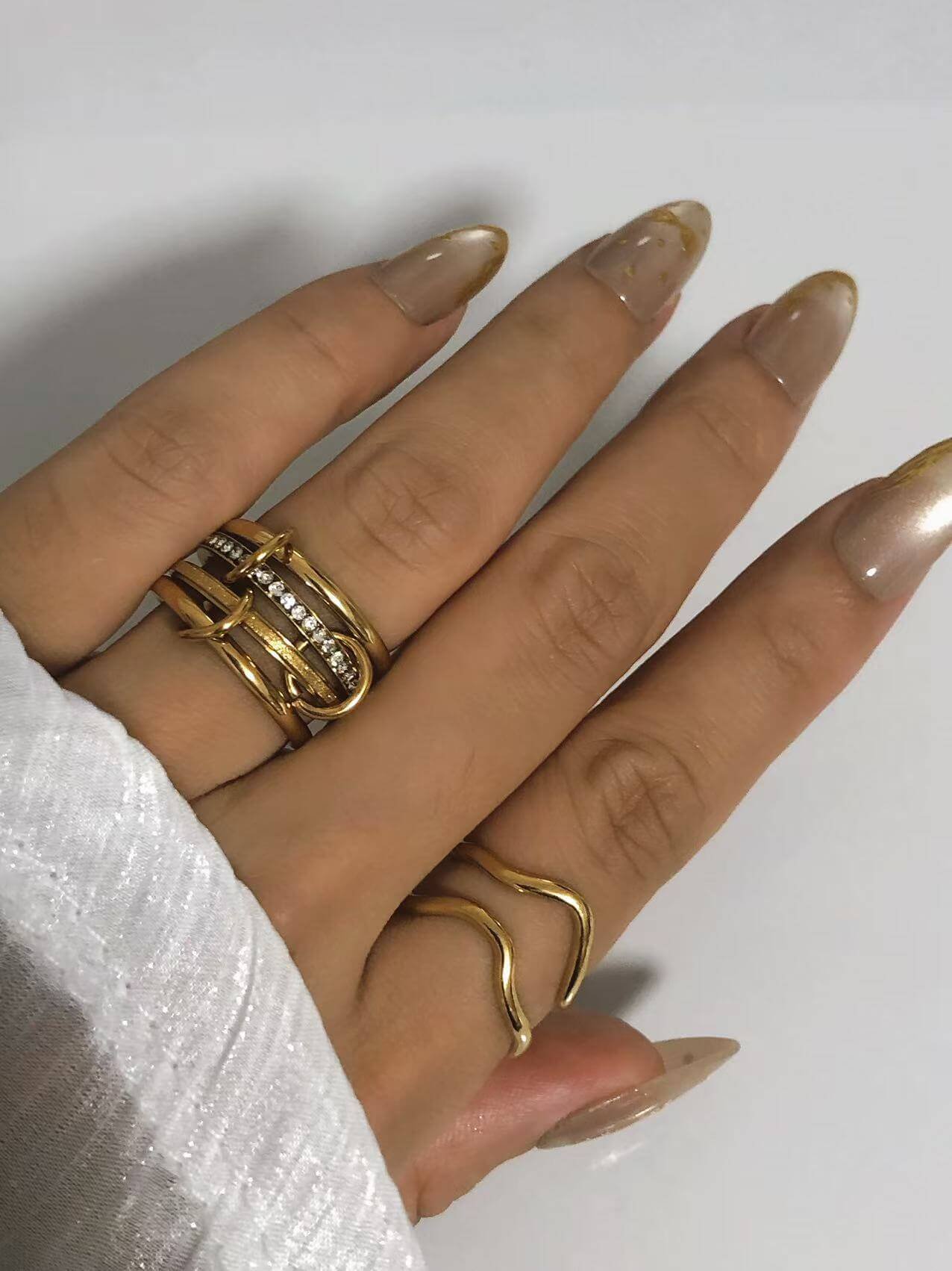 💫 18k Gold Layered Stack Ring | 4-Band Crystal Ring Set | Tarnish-Free Sizes 6-10 | Connected Rings Jewelry – HEYBIJOU