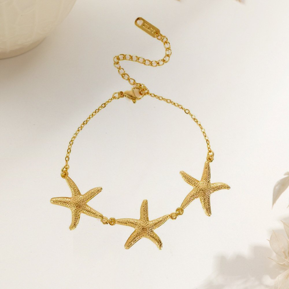 Gold Triple Starfish Chain Bracelet
