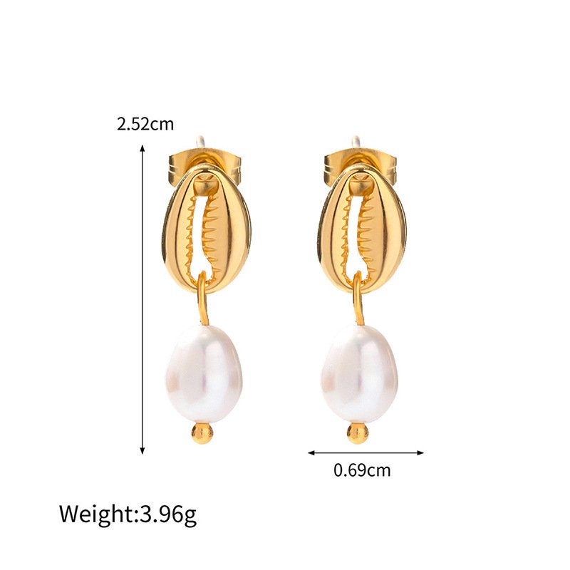 Luxury 18K Gold Cowrie Shell Pearl Drop Earrings – waterproof & tarnish-free titanium steel. The viral golden shell + pearl combo that never fades!