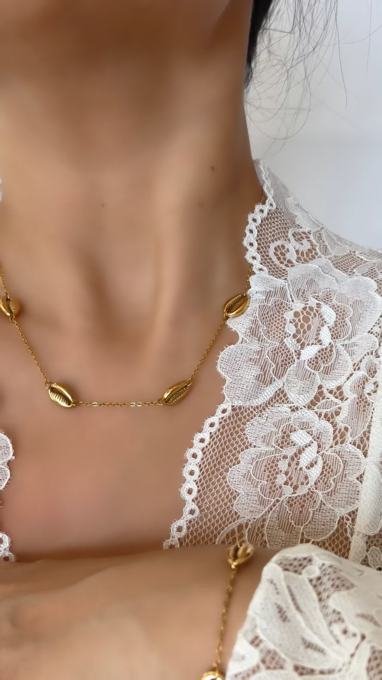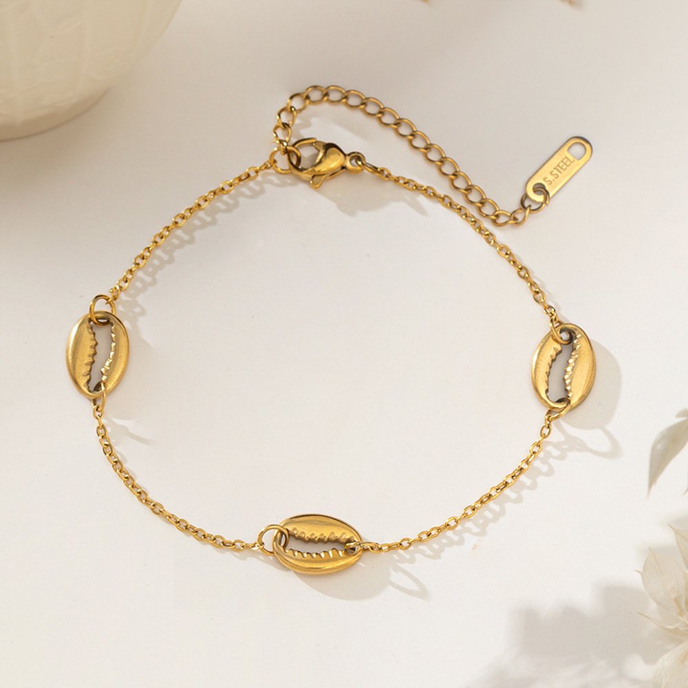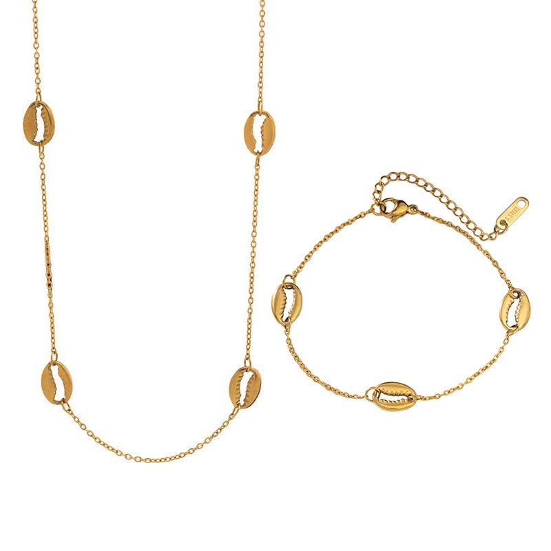 Luxury 18K Gold Cowrie Shell Necklace & Bracelet Set – 100% waterproof & tarnish-free titanium steel. Iconic golden seashell jewelry that never fades!
