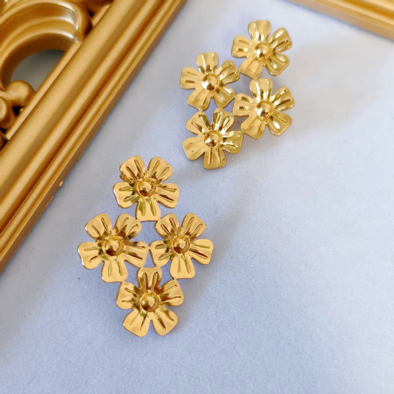 18K Gold Daisy Cluster Stud Earrings – Waterproof & Tarnish-Free Titanium Steel • Cute Floral Bloom Studs • Everyday Sunshine Luxury That Never Fades!