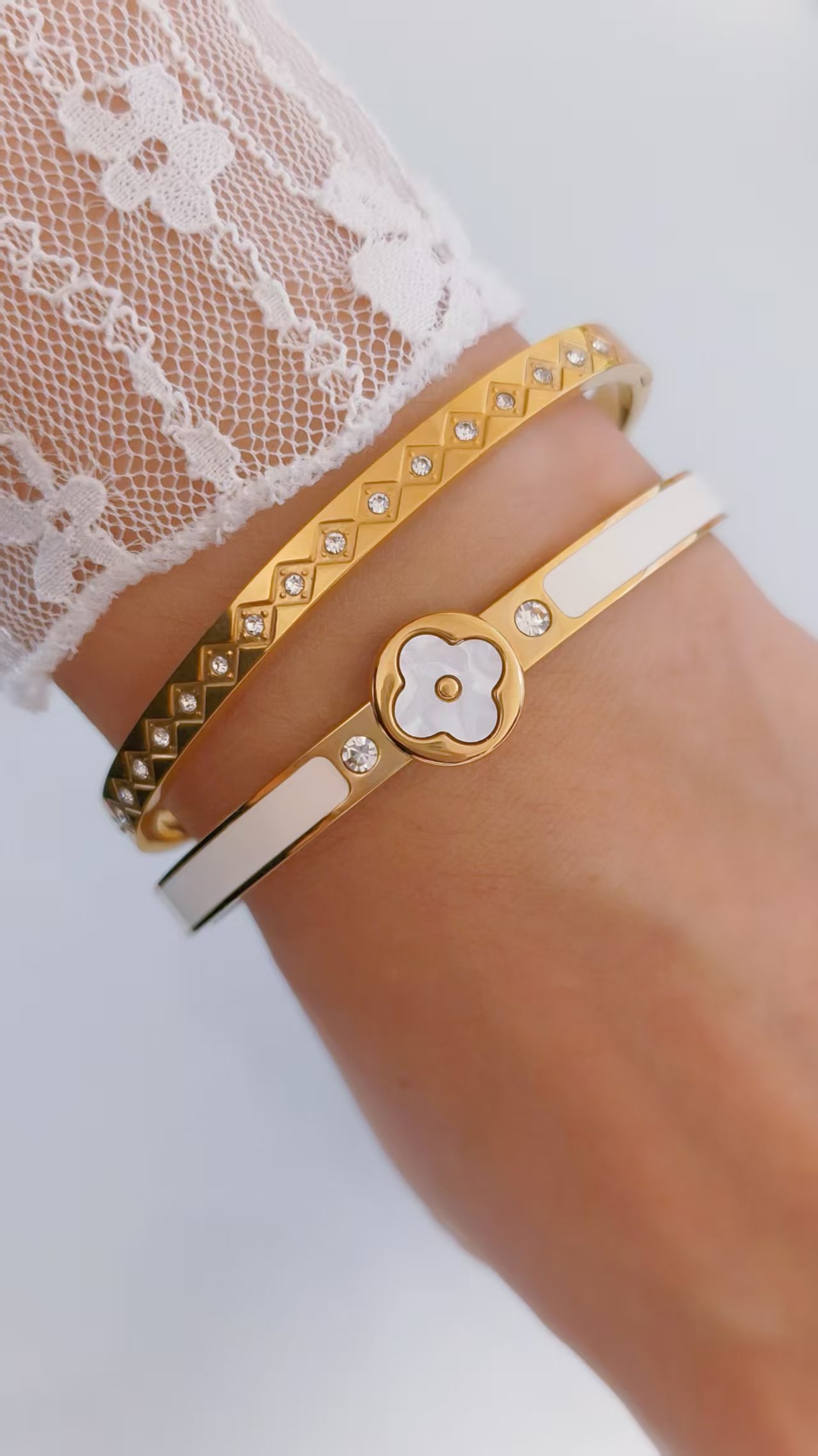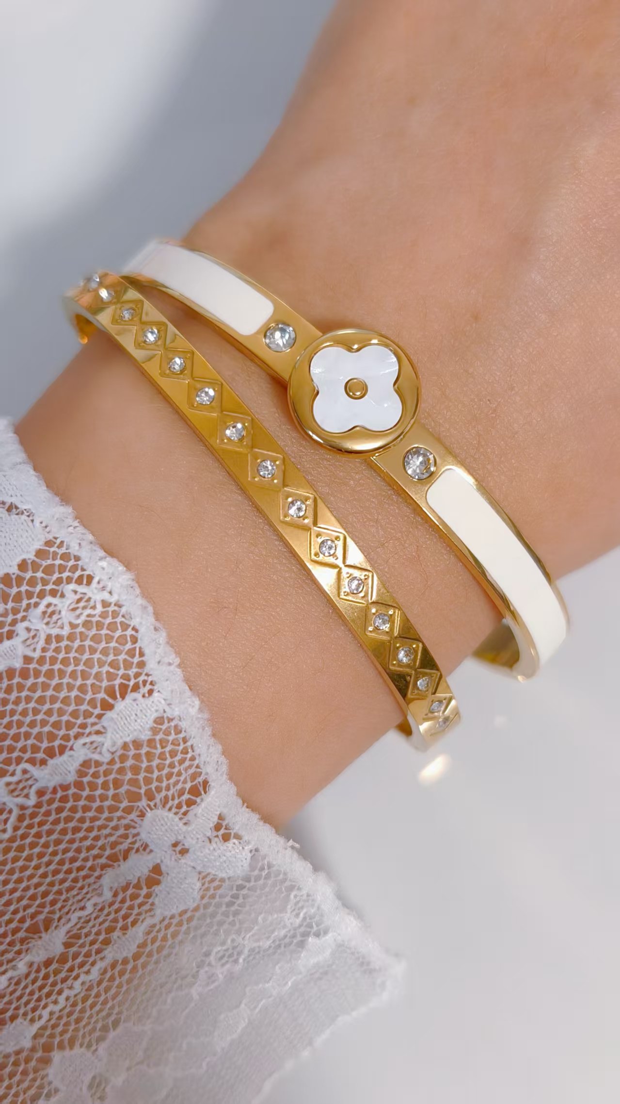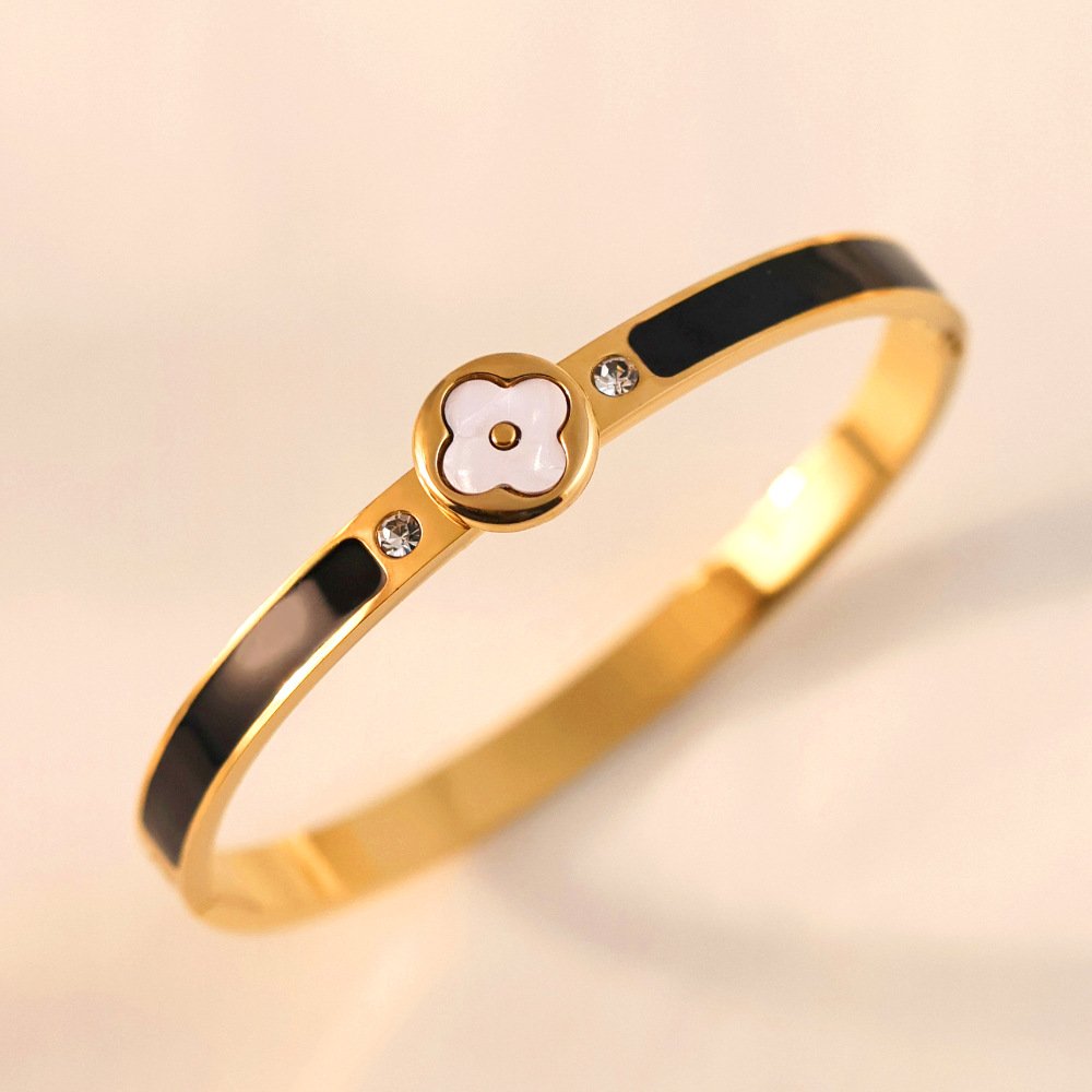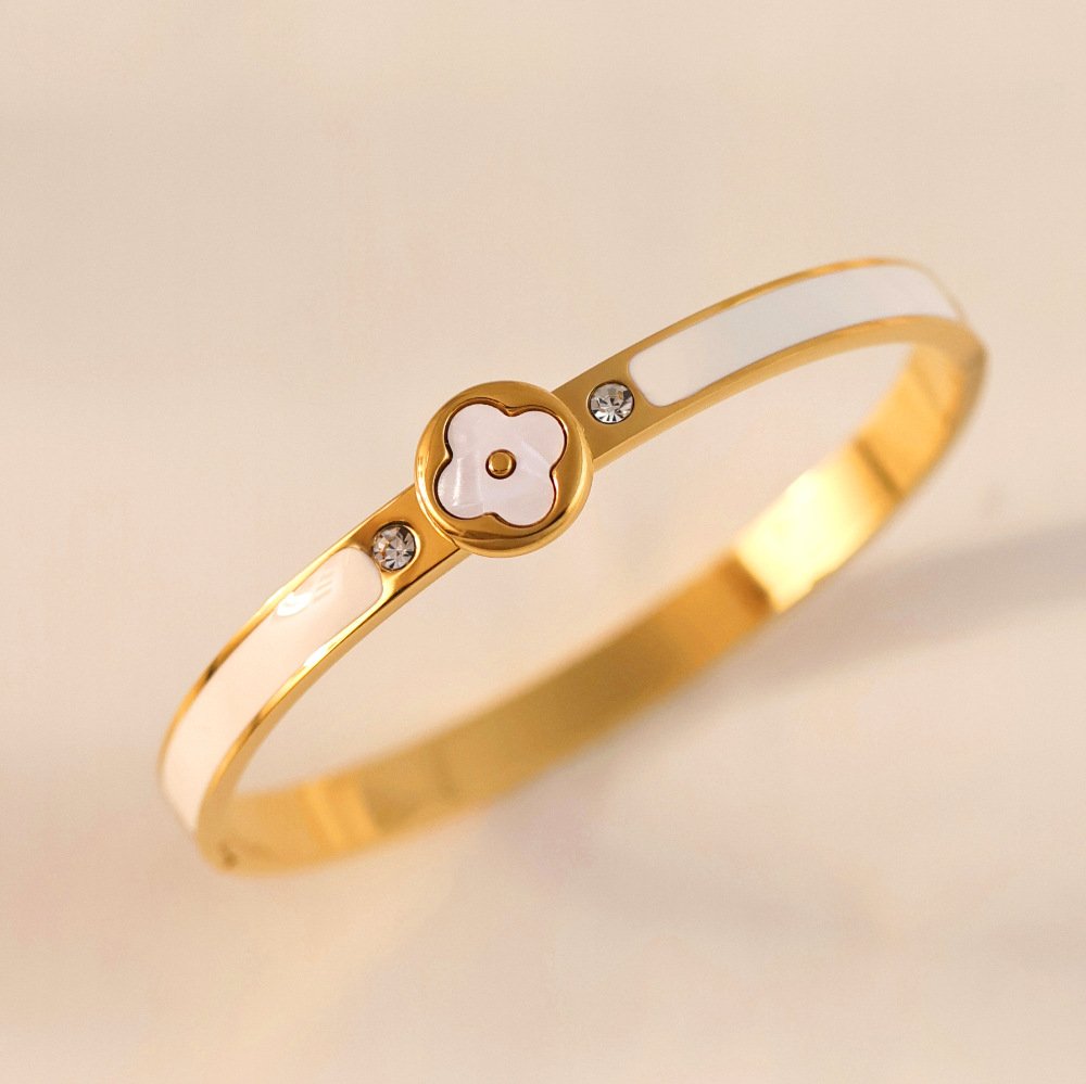 Golden Enamel Bezel Clover Bangle