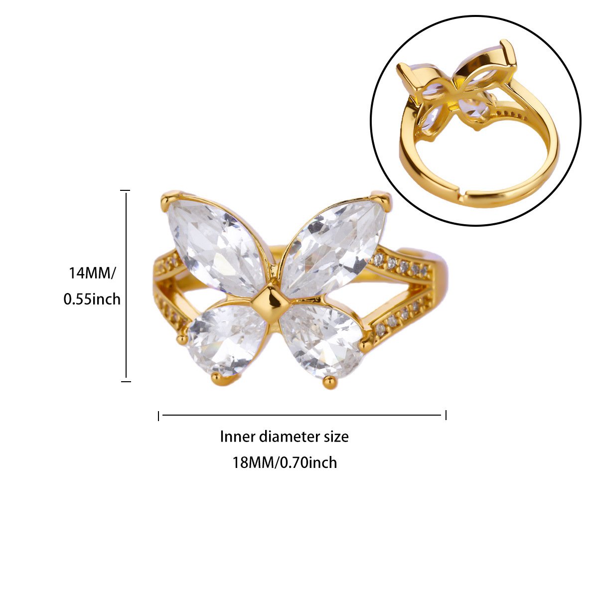 Golden Floating Butterfly Zircon Open Ring