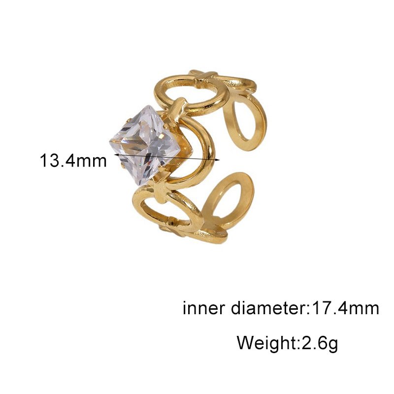 Sparkle sharp with our tarnish-free Golden Interlock Square Zircon Open Ring—18K gold-plated titanium, geometric loops & brilliant square zircon for modern luxury!
