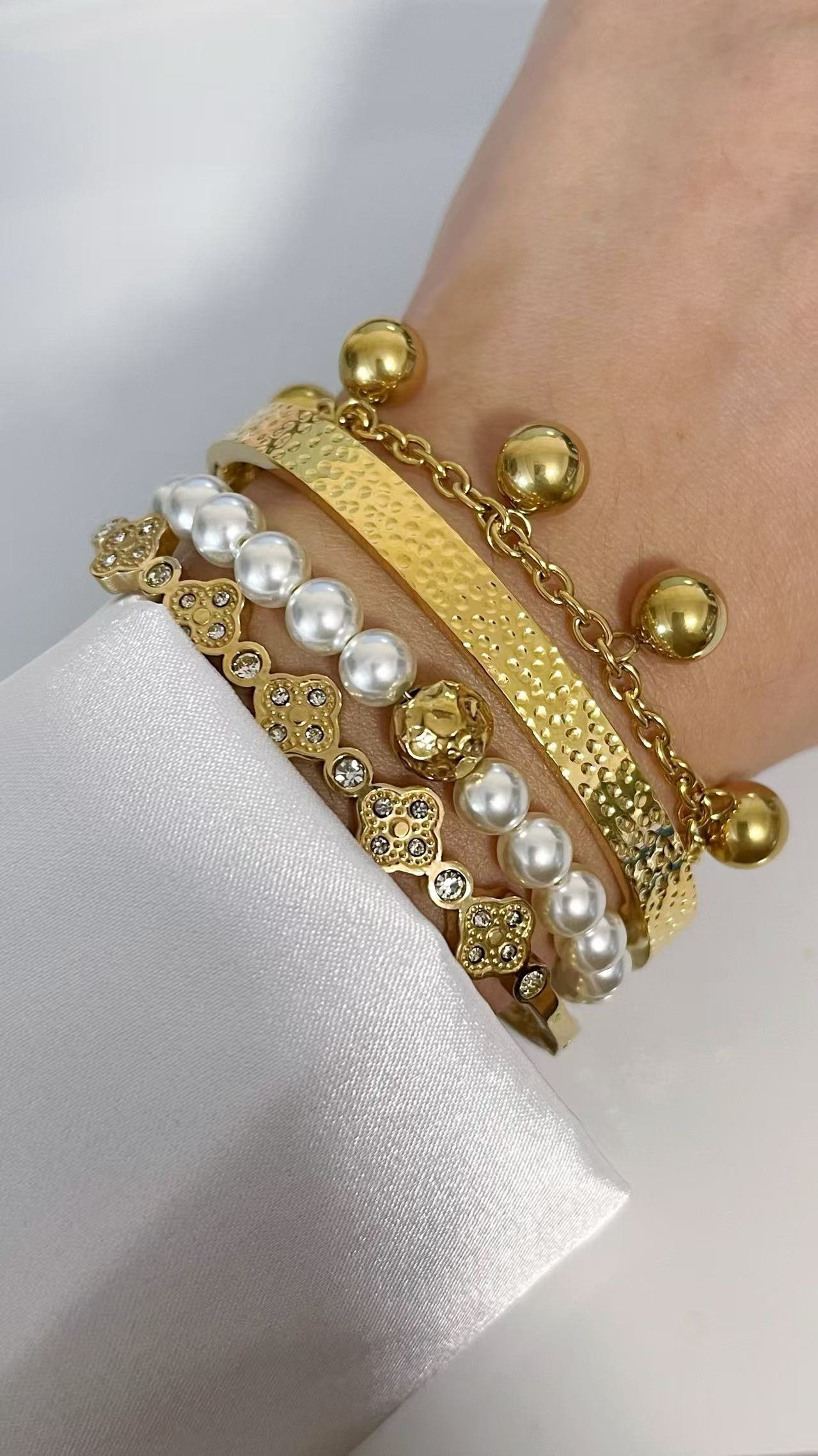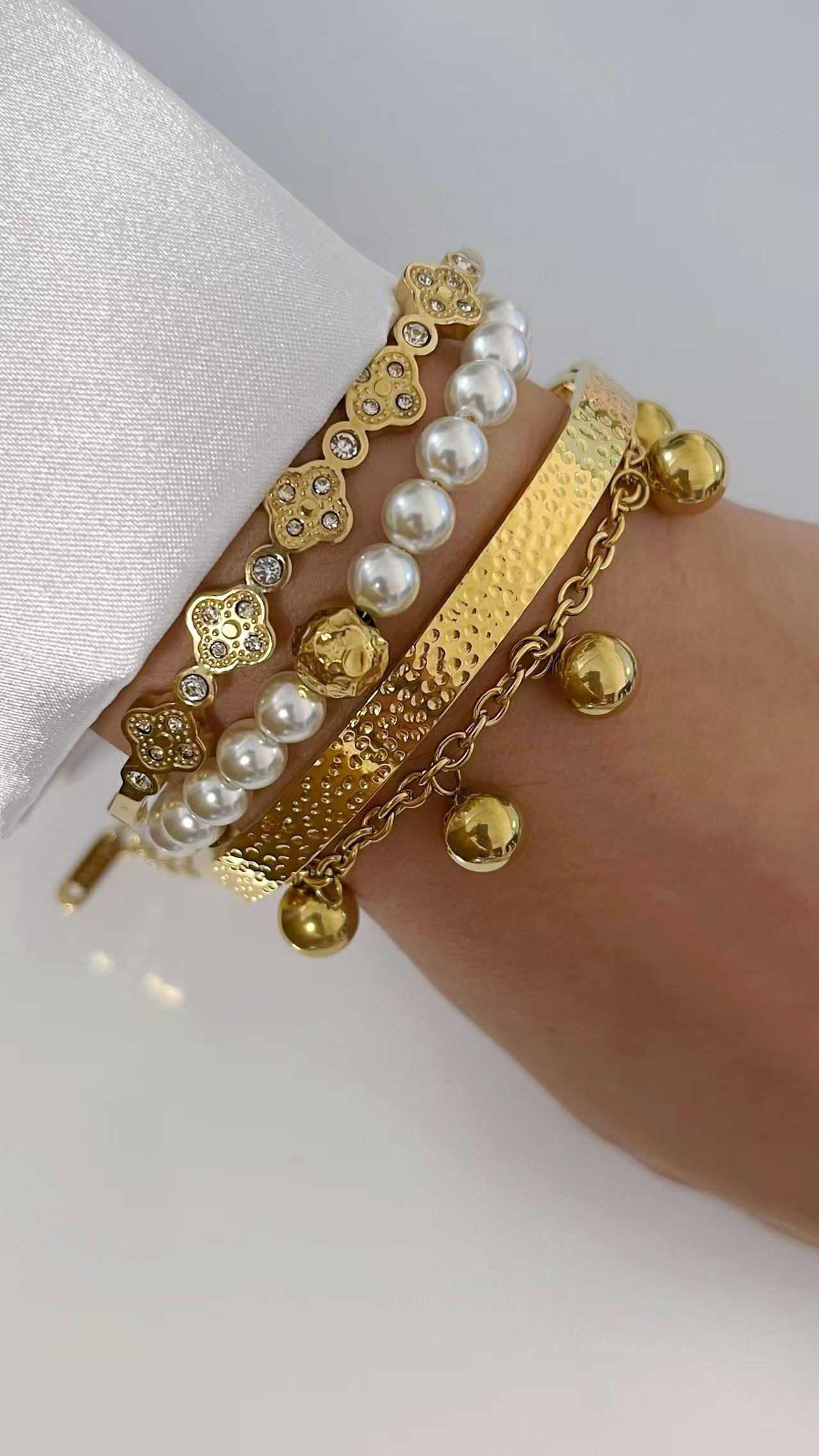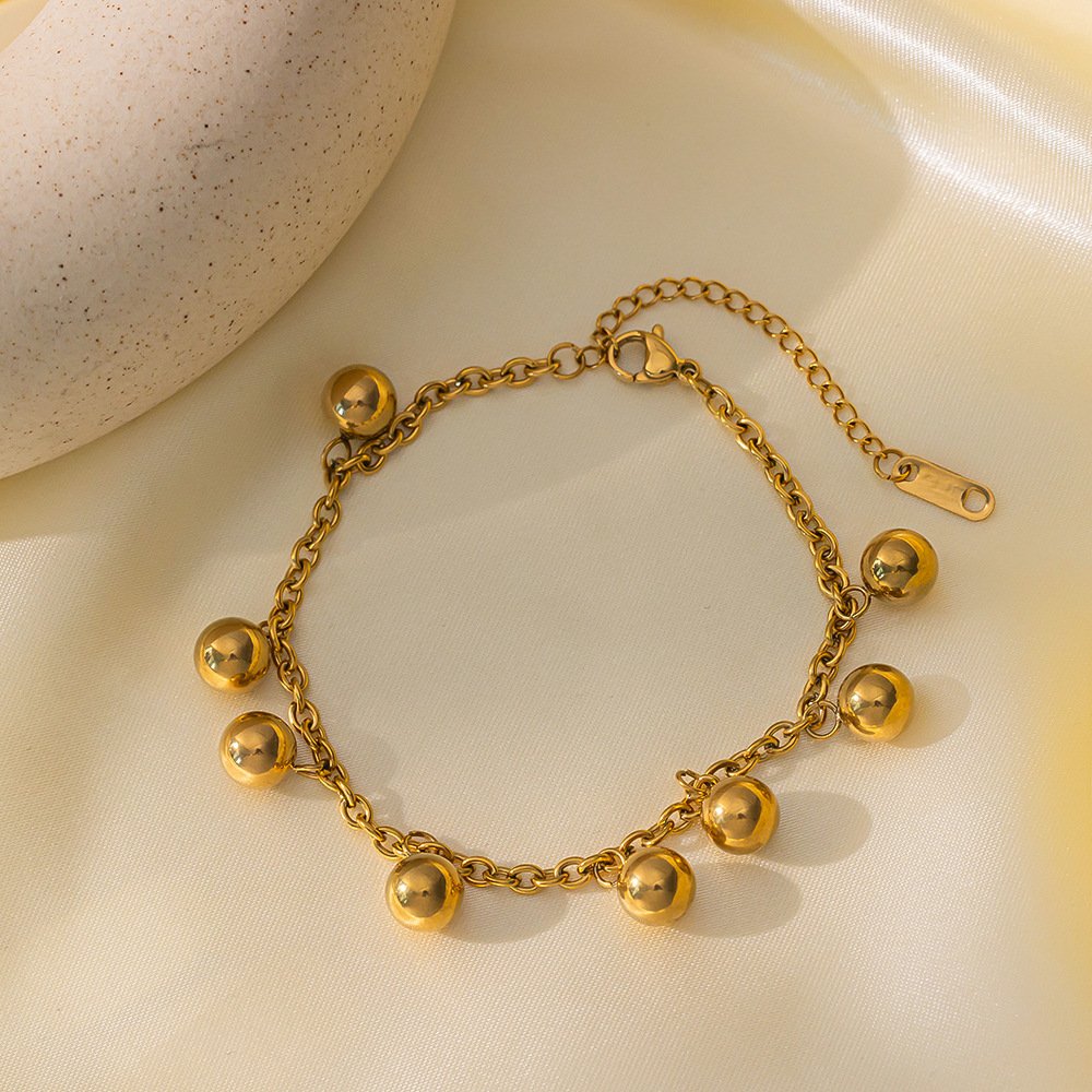 Dive into dazzle with HEYBIJOU’s 18K gold orb cascade bracelet—tarnish-free, water-resistant spheres that sway with luxe allure. Your wrist’s golden serenade!