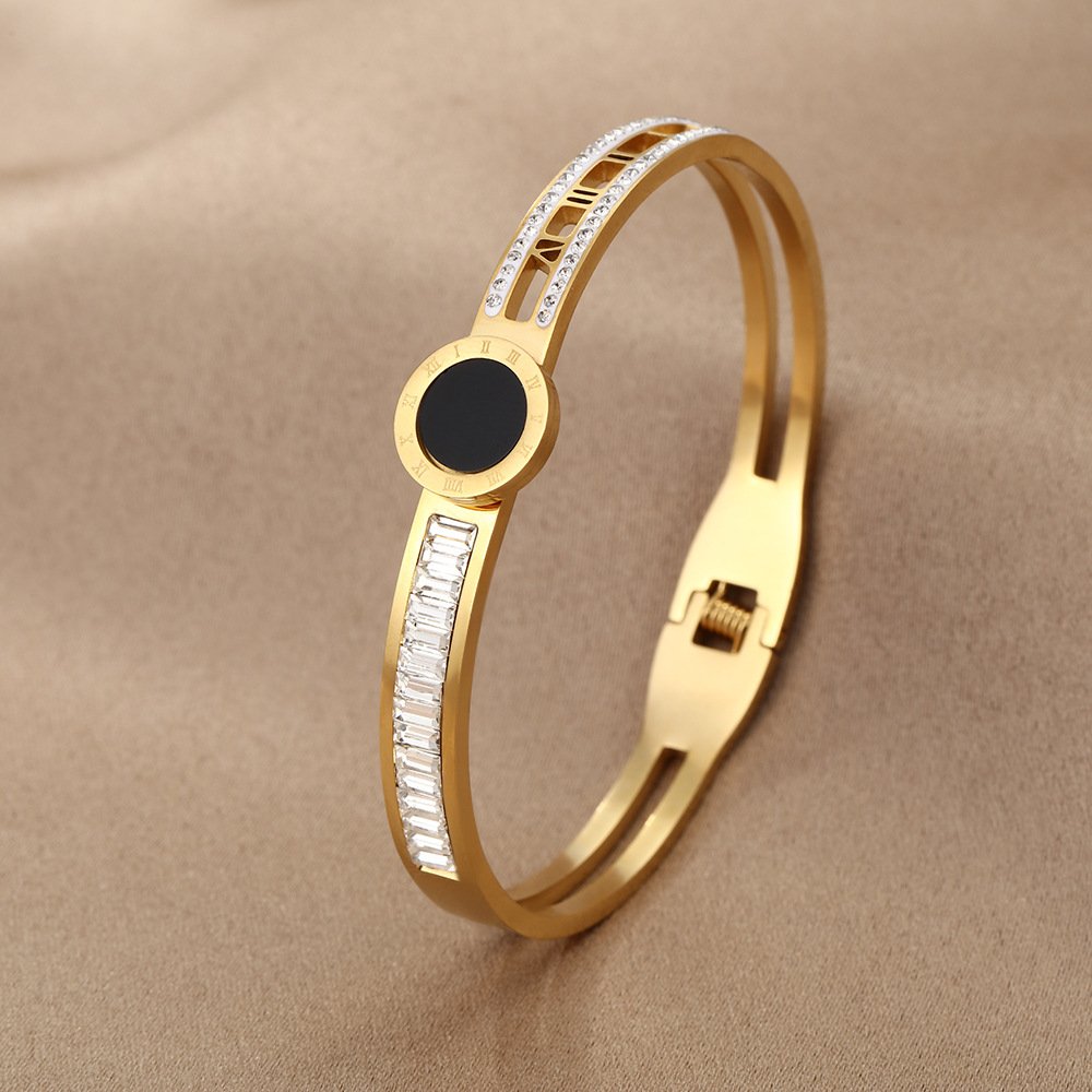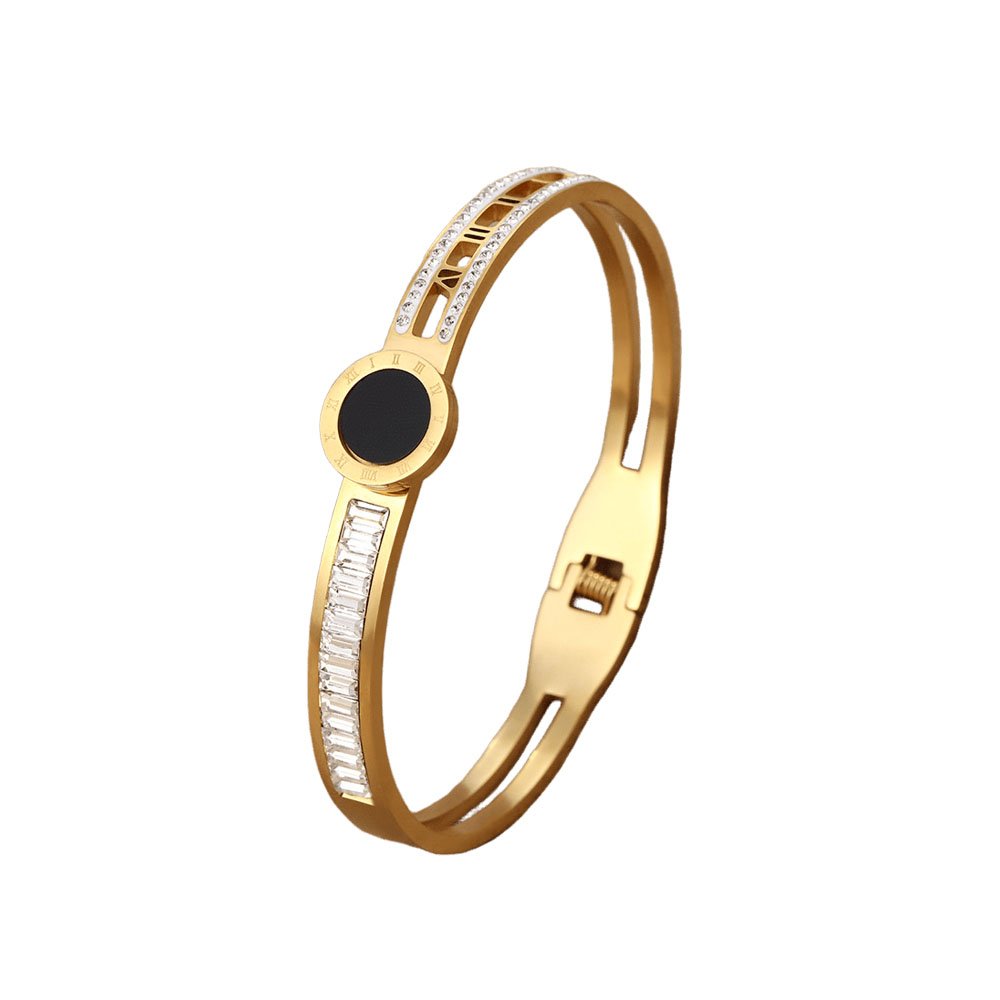 Slip it on and feel the instant power: the Roman numerals whisper timeless strength while the zircons dance with icy fire, turning your wrist into a quiet masterpiece of heritage and luxury. Whether paired with tailored suits for boardroom elegance, flowy dresses for romantic evenings, or casual looks for subtle drama, it infuses every moment with sophisticated allure and magnetic presence. This isn’t just a bangle – it’s wearable legacy that celebrates strength, style, and unbreakable glow. Claim this golden Roman masterpiece and let your wrist tell stories of enduring elegance!