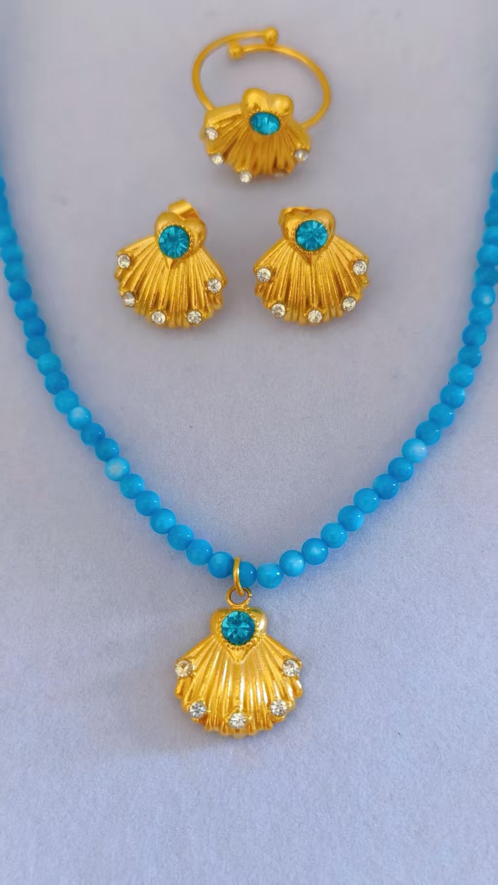 Golden Turquoise Seashell Zircon Jewelry Set