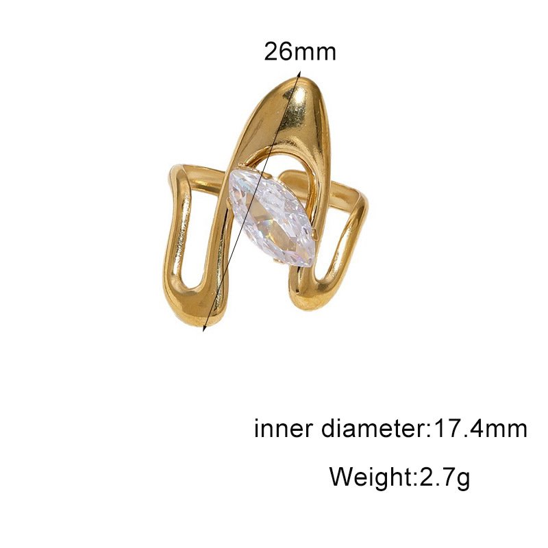 Crafted from lightweight titanium steel and drenched in premium 18K gold plating, this open ring delivers that warm, high-end golden glow with incredible durability. The smooth, wave-inspired curves boast a polished, almost molten finish for an artisanal touch, while the securely inlaid marquise zircon sits perfectly centered, maximizing its brilliant facets and elongated elegance. Adjustable open band ensures a comfortable, custom fit – stack it for drama, wear solo for subtle sophistication, or mix with your favorite rings for endless chic combinations!