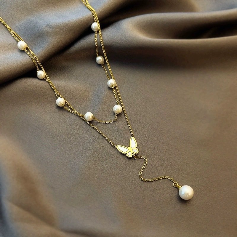 This ready-to-wear layered necklace saves you styling time while delivering maximum impact — ideal over a simple tee for casual chic or paired with an evening dress for enchanting glamour. The butterfly and pearl combination feels fresh yet classic, making it a go-to piece for romantic souls and a thoughtful gift that feels truly special.