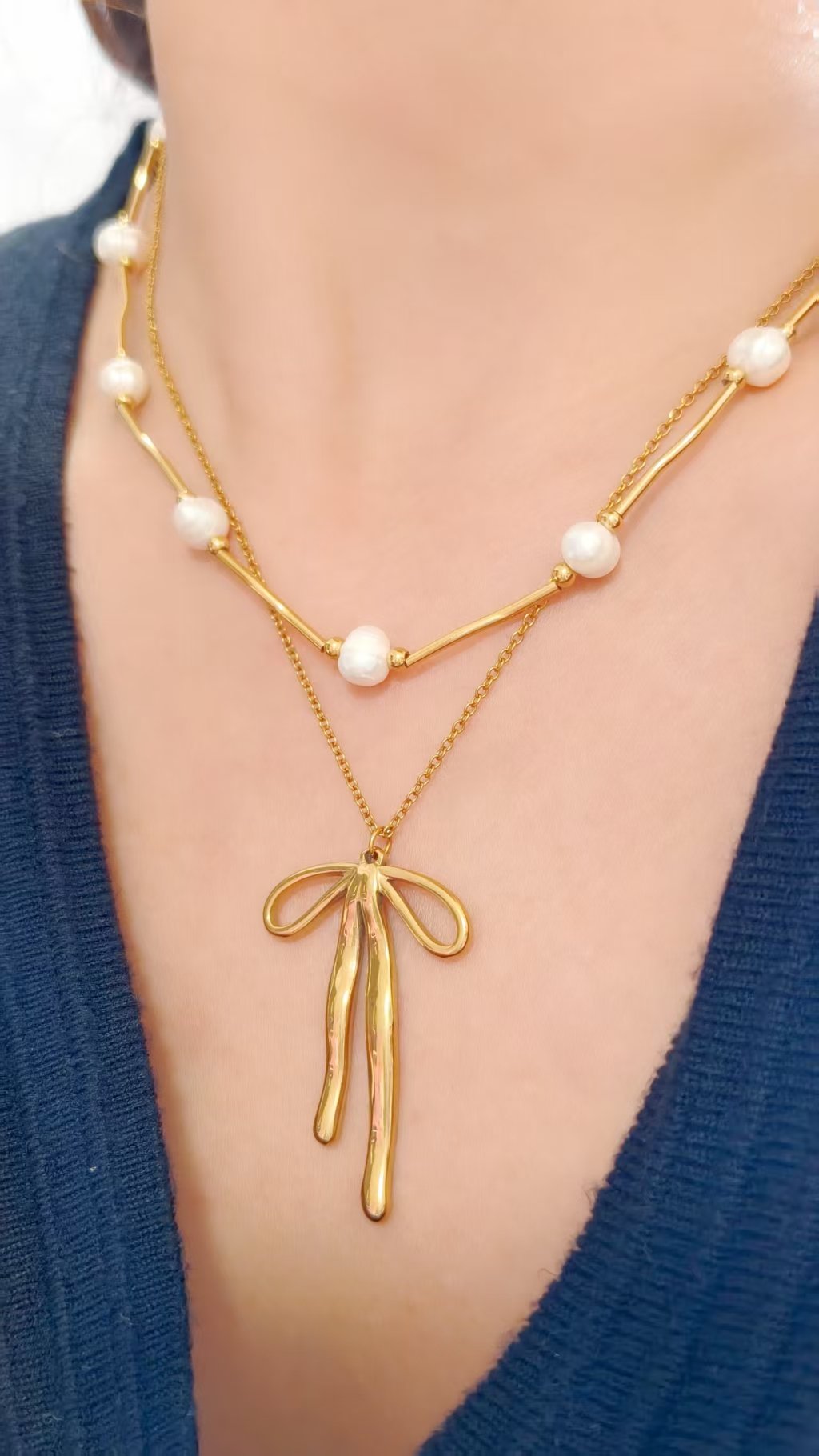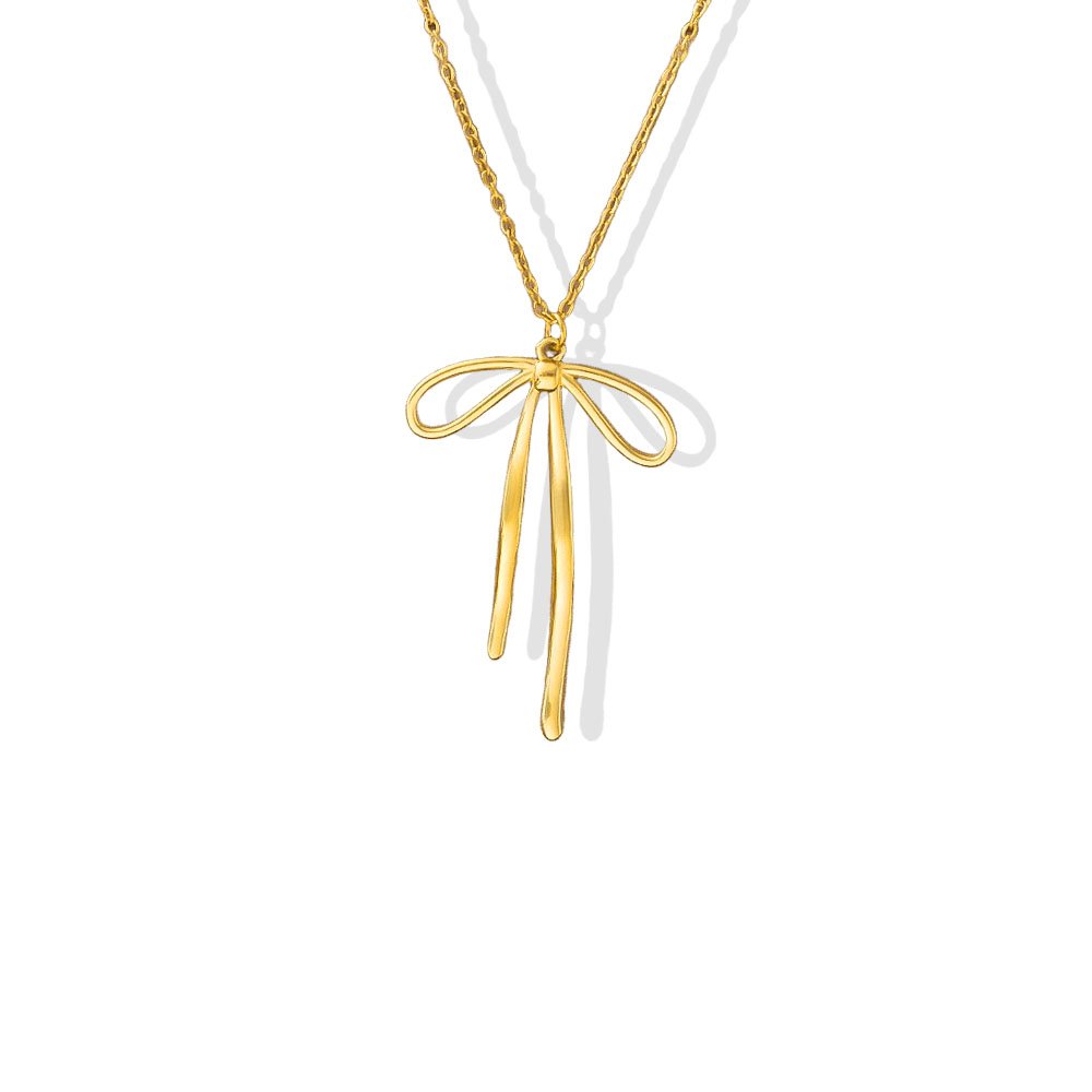 Oversized gold bow pendant necklace in 18K gold — sculptural, tarnish-free & water-resistant. The statement bow necklace you’ve been waiting for. 🎀✨