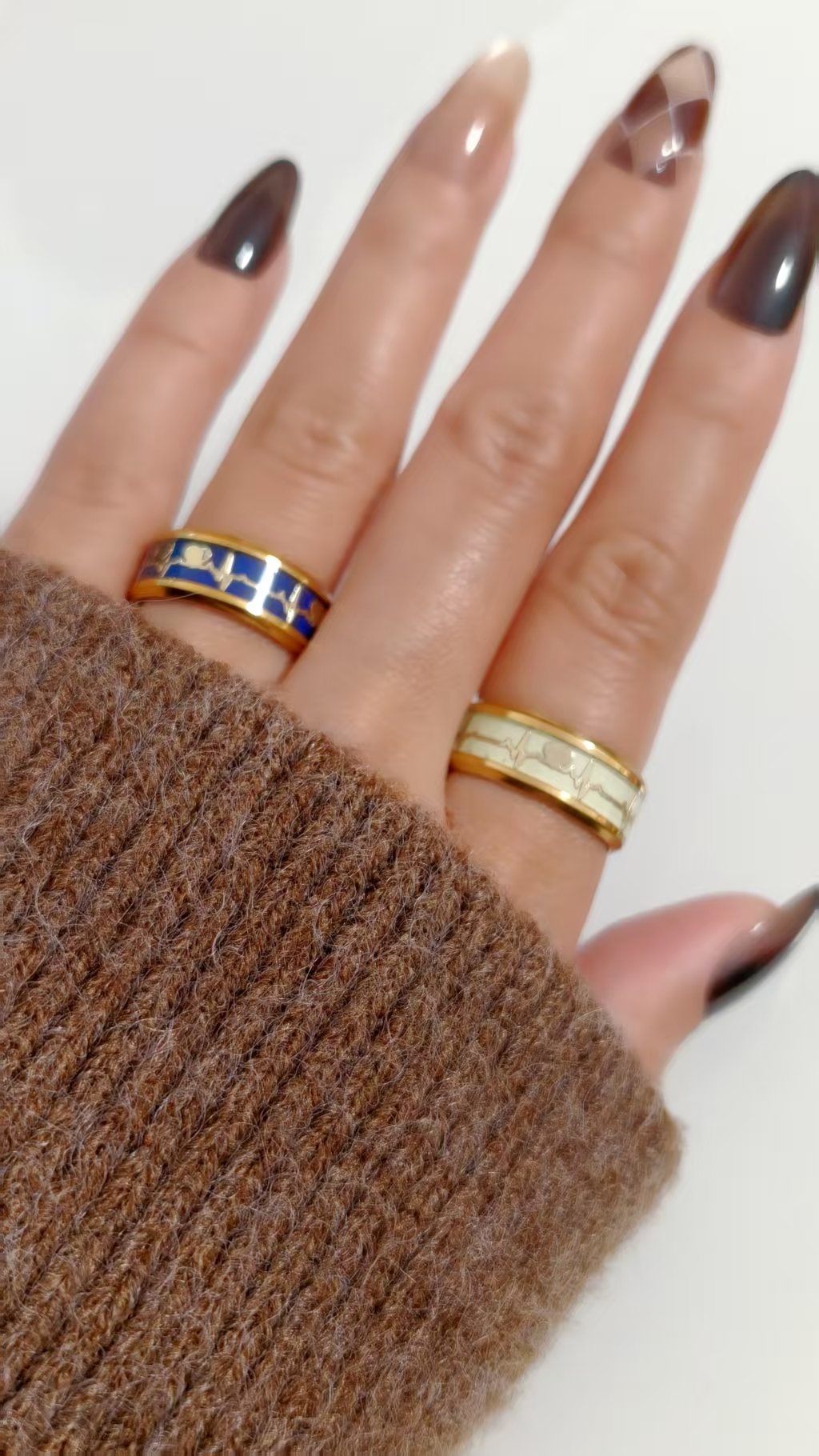 Slip it on and watch the magic unfold: your body heat reveals hidden colors in the heartbeat line, while darkness transforms it into a softly glowing symbol of eternal connection. Whether in gold for romantic warmth or silver for sleek sophistication, it turns every moment into something intimate and unforgettable – from cozy date nights to everyday reminders of love. This isn’t just jewelry – it’s a living, breathing expression of passion, playfulness, and unbreakable bond. Choose your color, feel the pulse, and let this thermochromic heartbeat ring become your forever love story!
