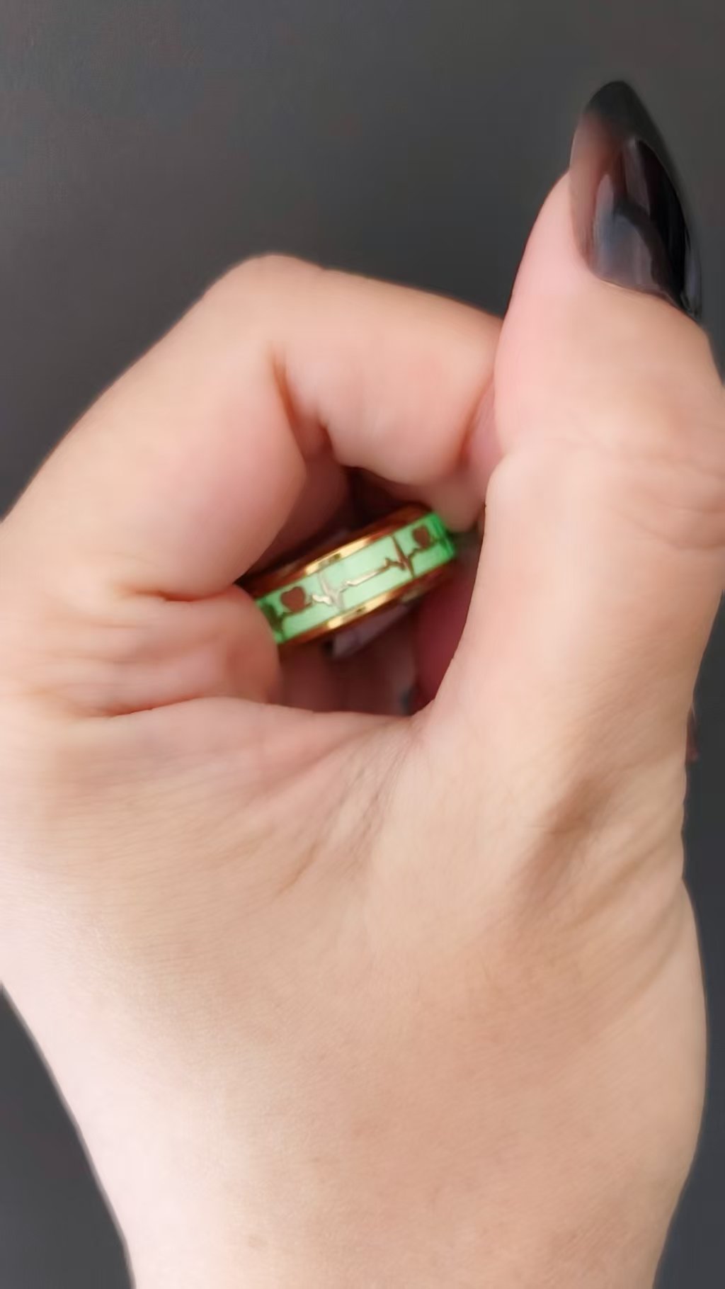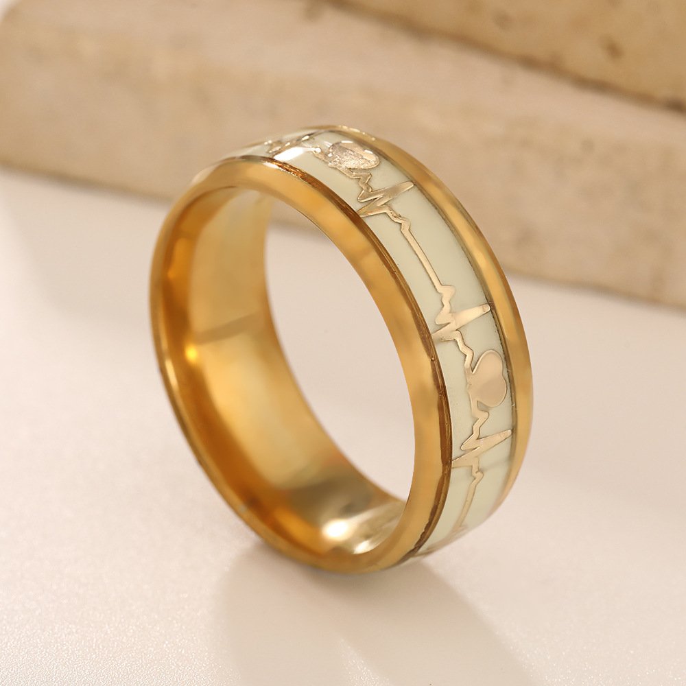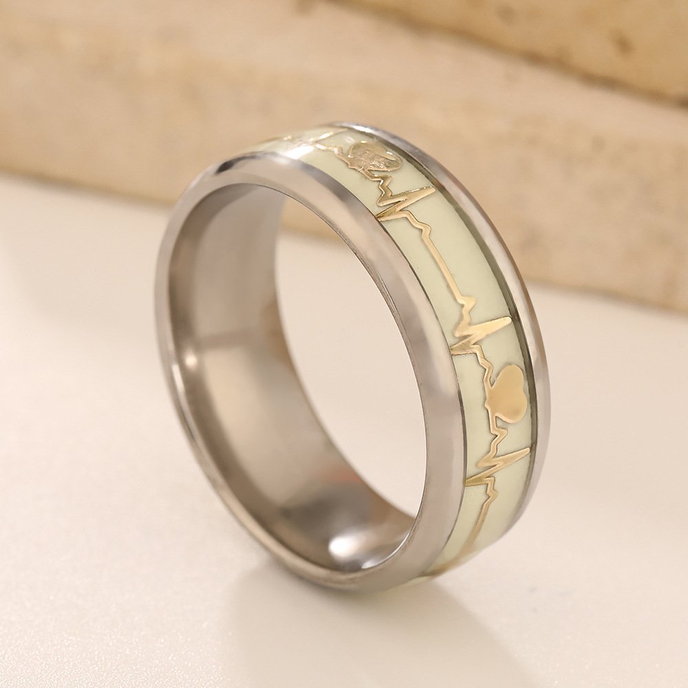 Feel the love glow with our tarnish-free Heartbeat Glow Ring (18K gold or silver plating)—titanium steel, thermochromic color-changing / noctilucent heartbeat for romantic magic!