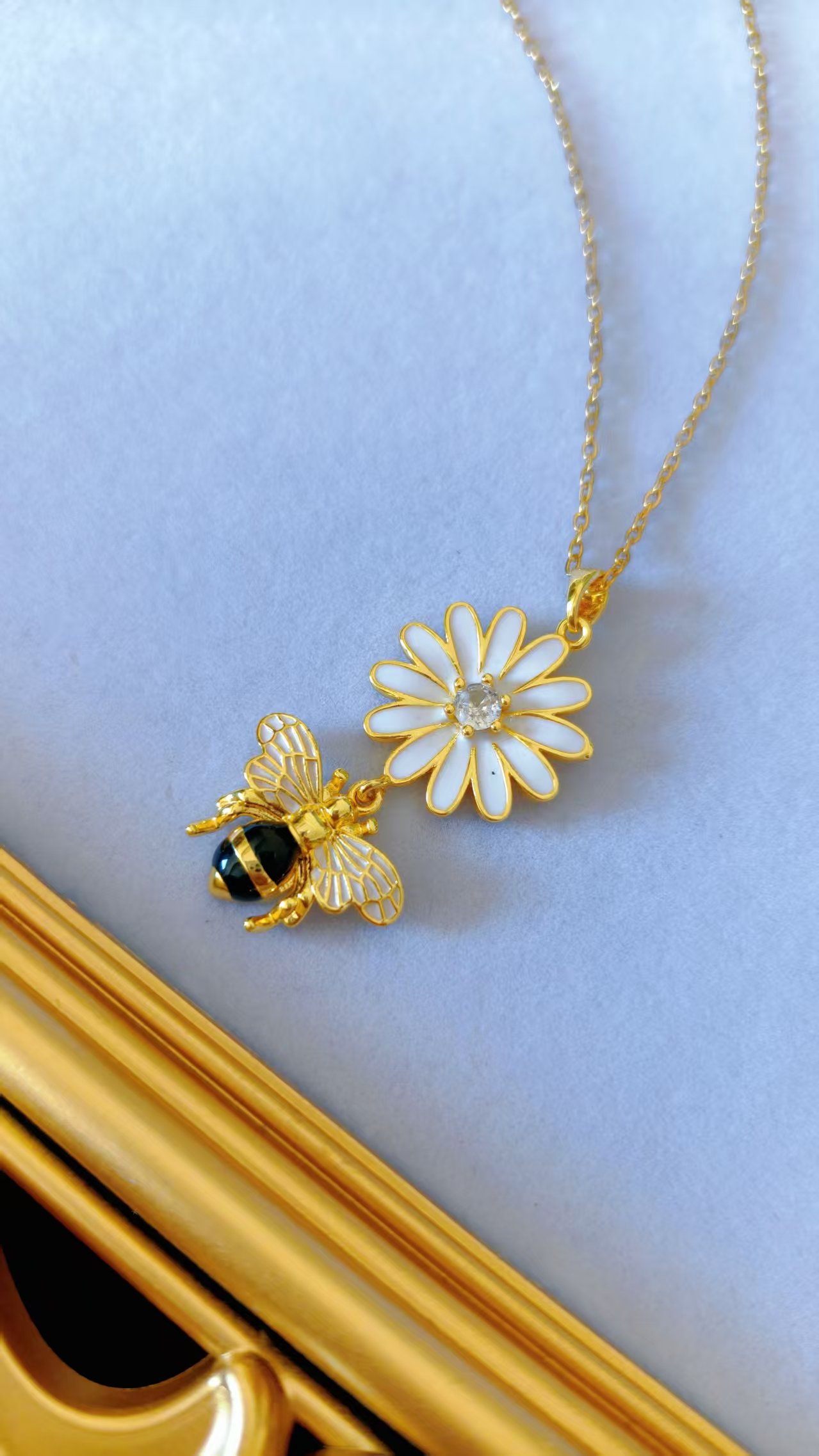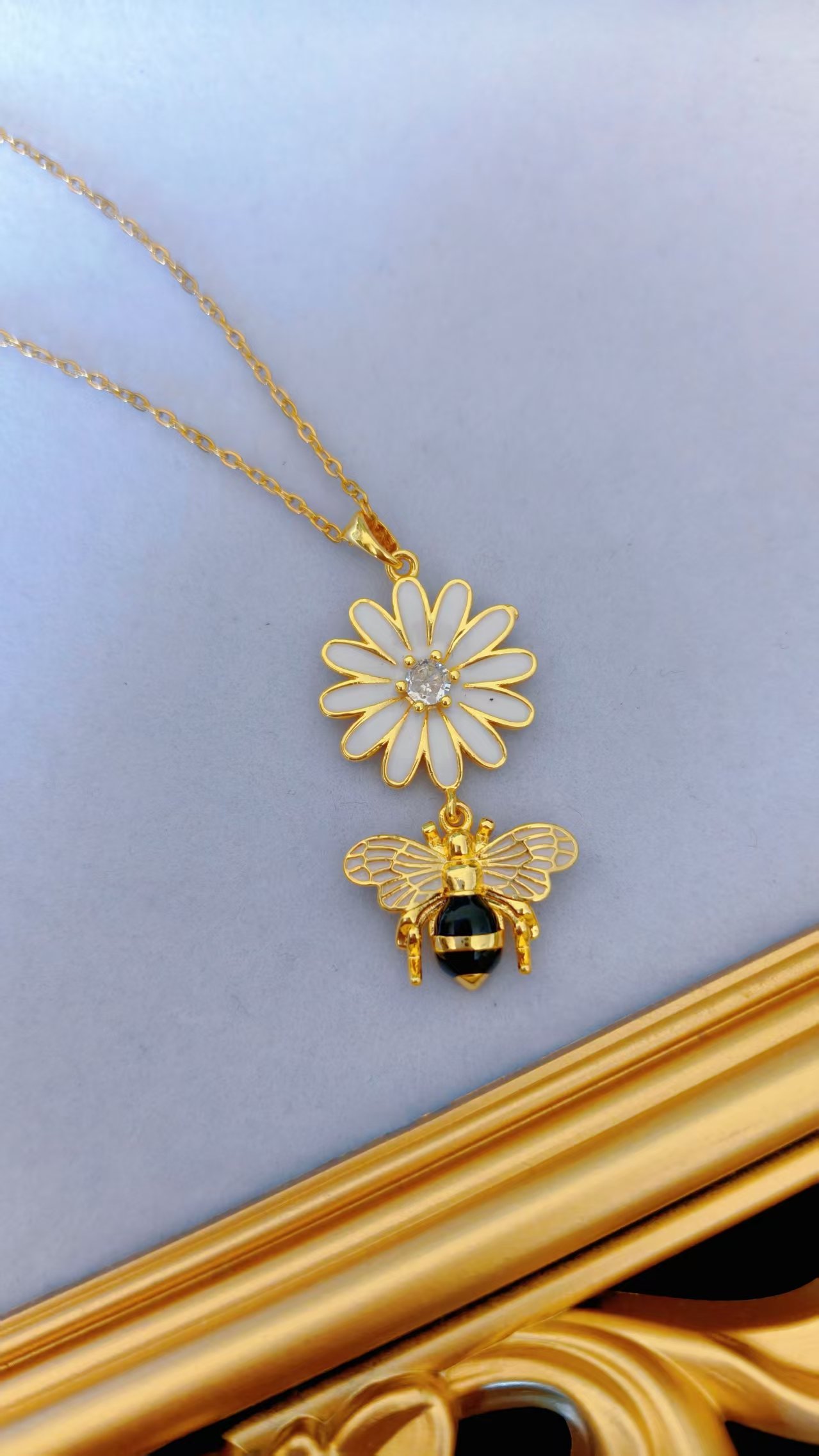 - β¨ Tarnish-free β the gold chain, daisy outline, and bee body maintain their warmth and brilliance indefinitely, while the white enamel and black bee enamel hold their crispness without chipping or fading