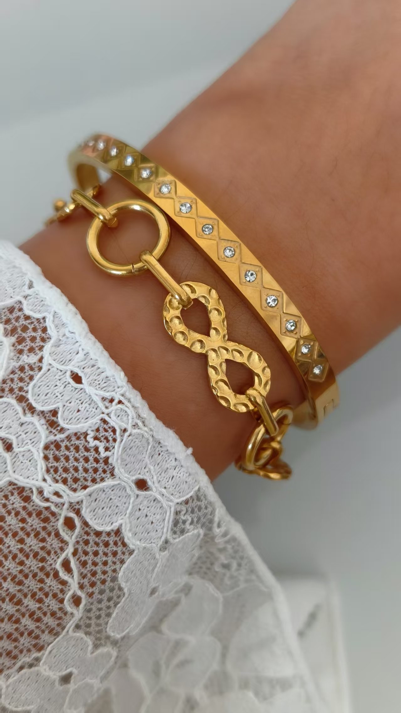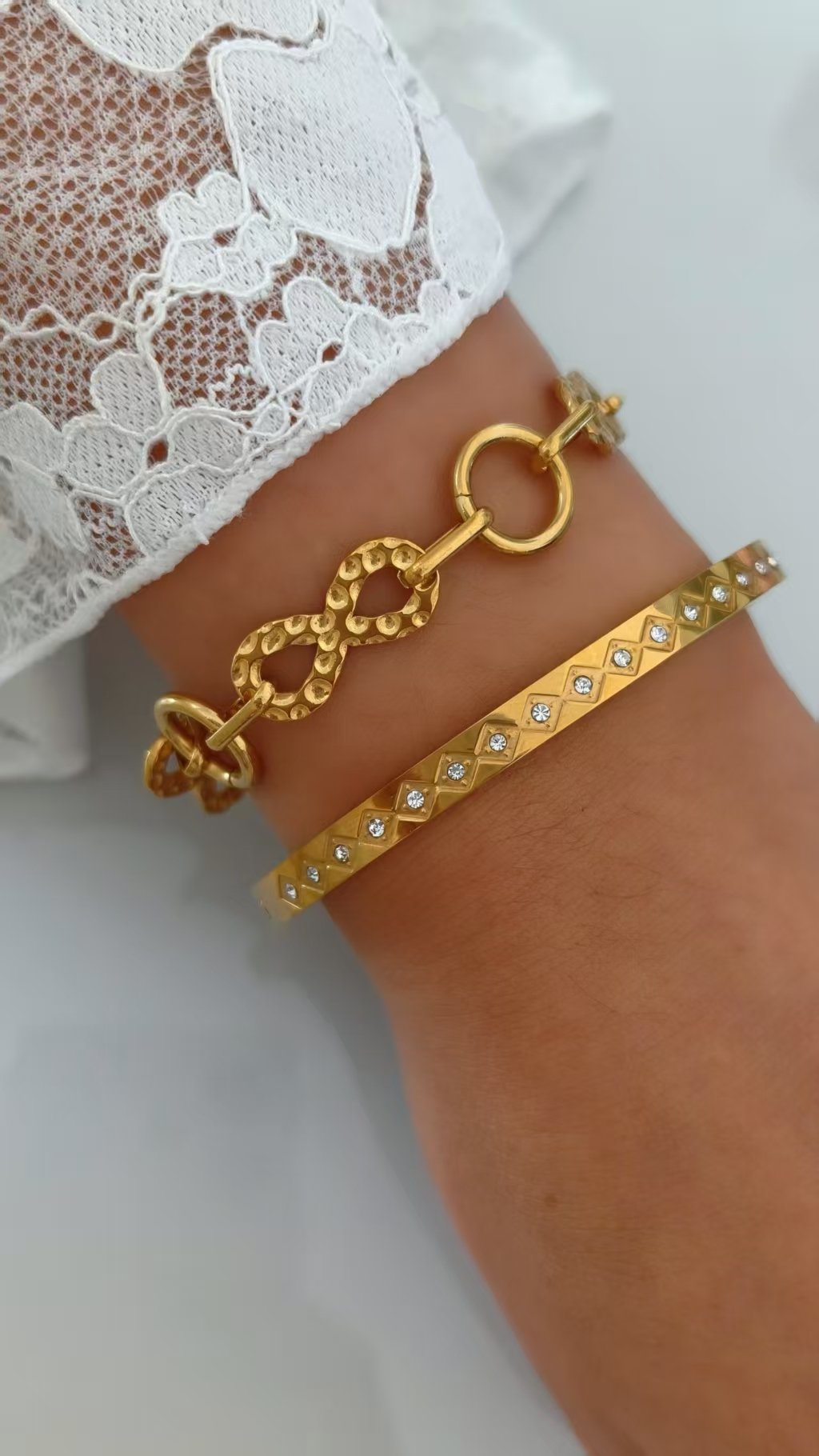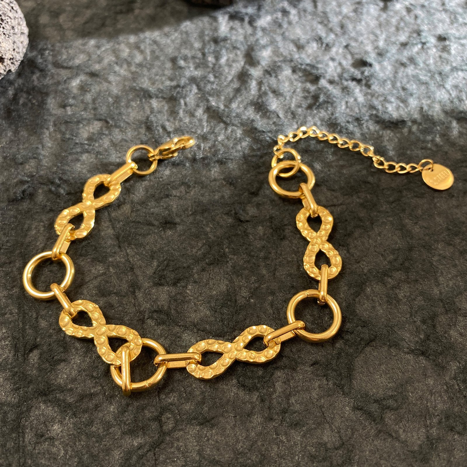 Step into boundless elegance with HEYBIJOU’s Infinity Link Luxe Bracelet! This breathtaking 18K gold-plated titanium steel chain features mesmerizing infinity-symbol links – each one thoughtfully textured with a hammered finish for that ultra-premium, artisanal depth. Symbolizing infinite love, endless opportunities, and limitless potential in life, this bracelet becomes your daily reminder that the possibilities are truly forever. Bold yet refined, it catches every ray of light and turns heads with effortless sophistication!