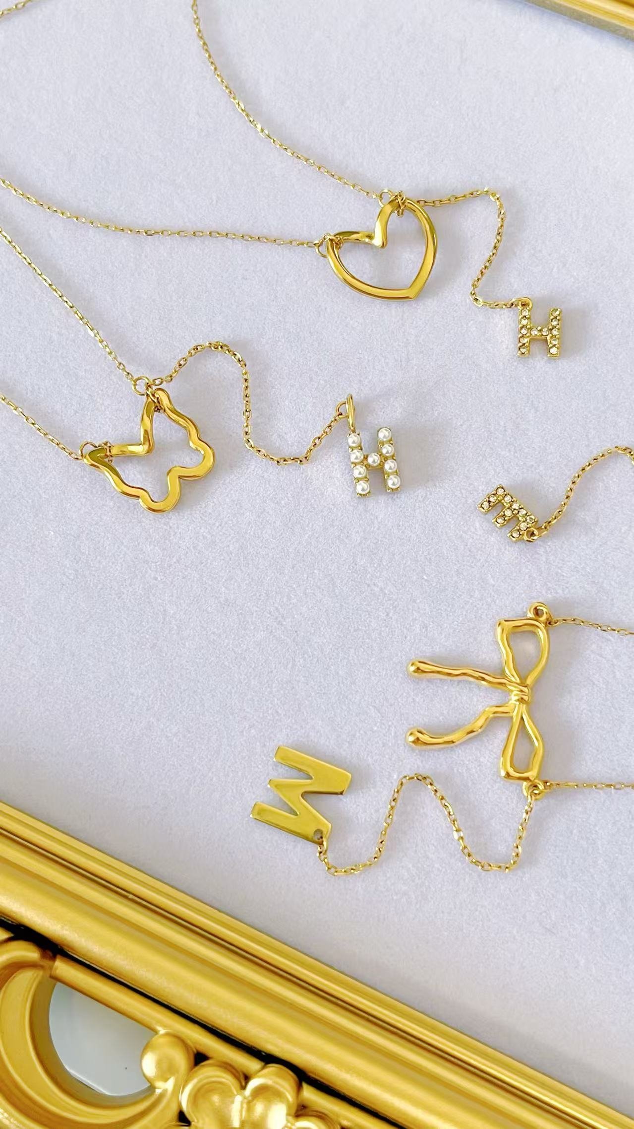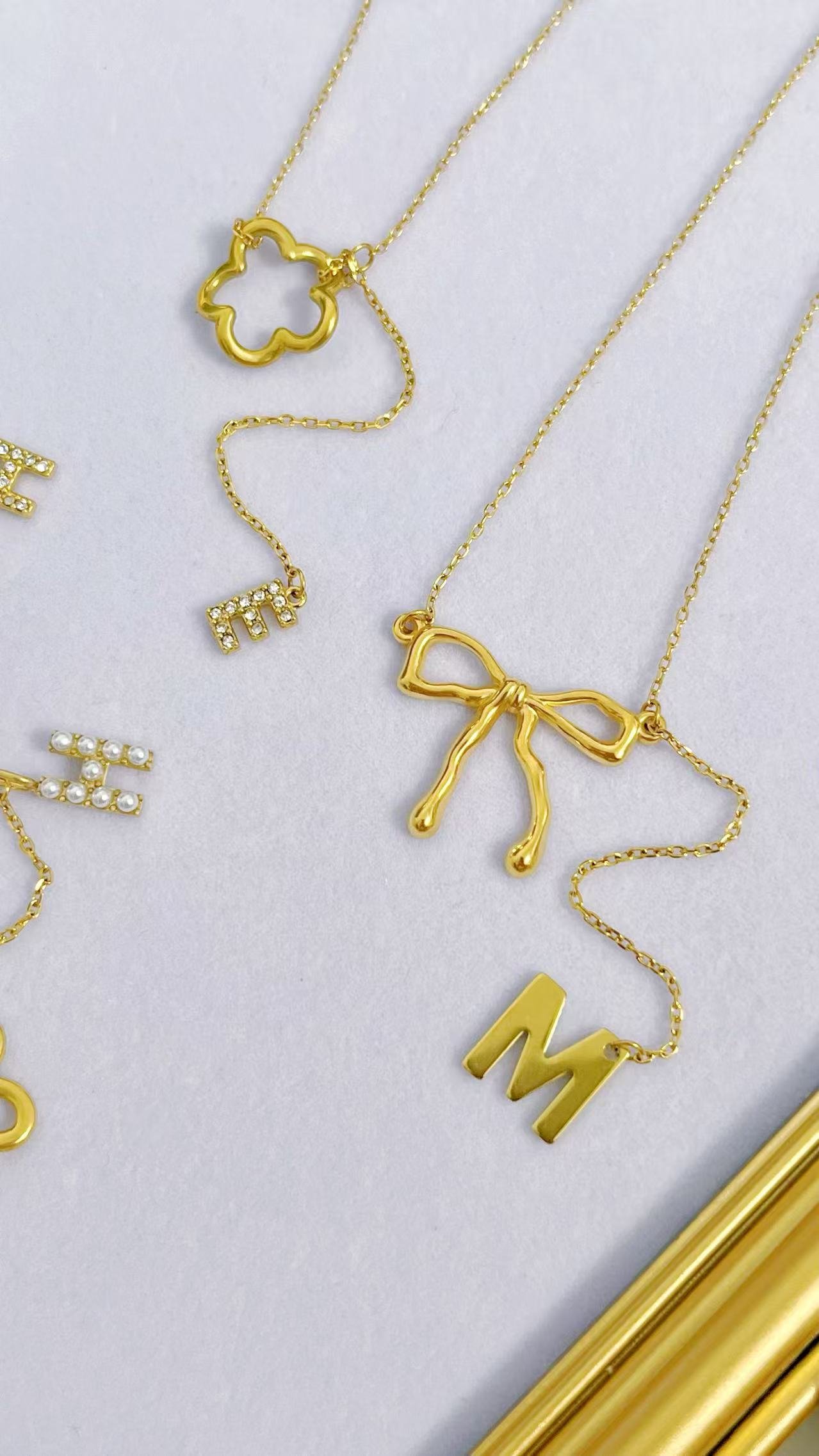 Original designed by Lily, the founder of Heybijou, this Initial Charm Personalized Pendant Necklace transforms your personal story into wearable art. Choose from four enchanting pendant styles—delicate butterfly, romantic heart, graceful bowknot, or blooming flower—each beautifully complemented by a sparkling initial charm that dangles below. Available in lustrous 18K gold plating or sophisticated silver finish, these necklaces offer endless possibilities for self-expression and meaningful gifting.